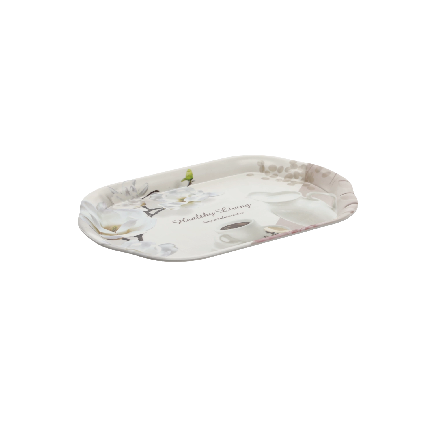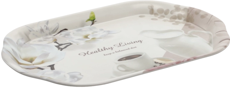 Plateau de service ovale pratique en plastique résistant, dimensions 40,5 × 28 cm, poids 270 g. Idéal pour une utilisation quotidienne en cuisine comme au jardin. Grâce à son bord rehaussé, il assure le transport sécurisé de la vaisselle et des boissons sans renversement, et sa conception légère et facile à nettoyer fait gagner du temps et de l’effort.