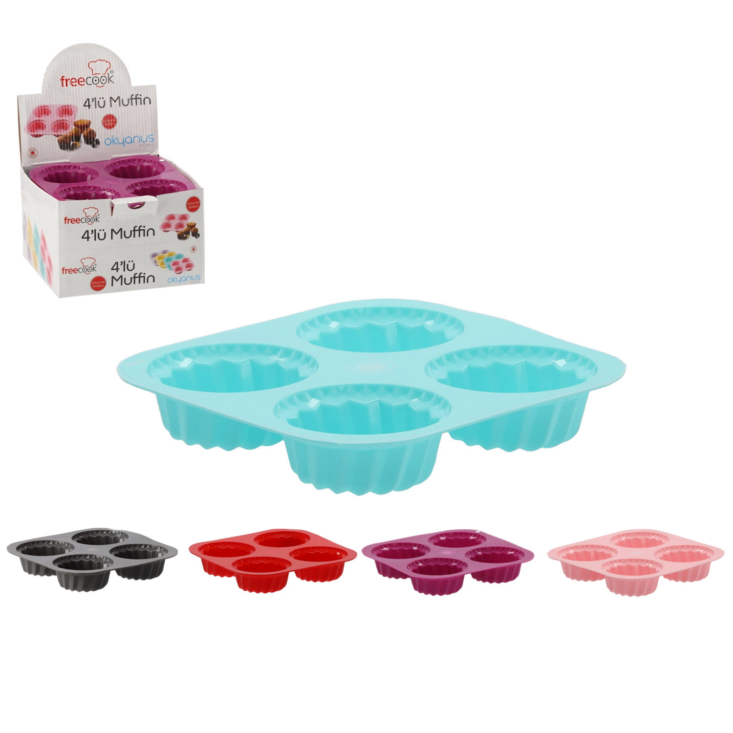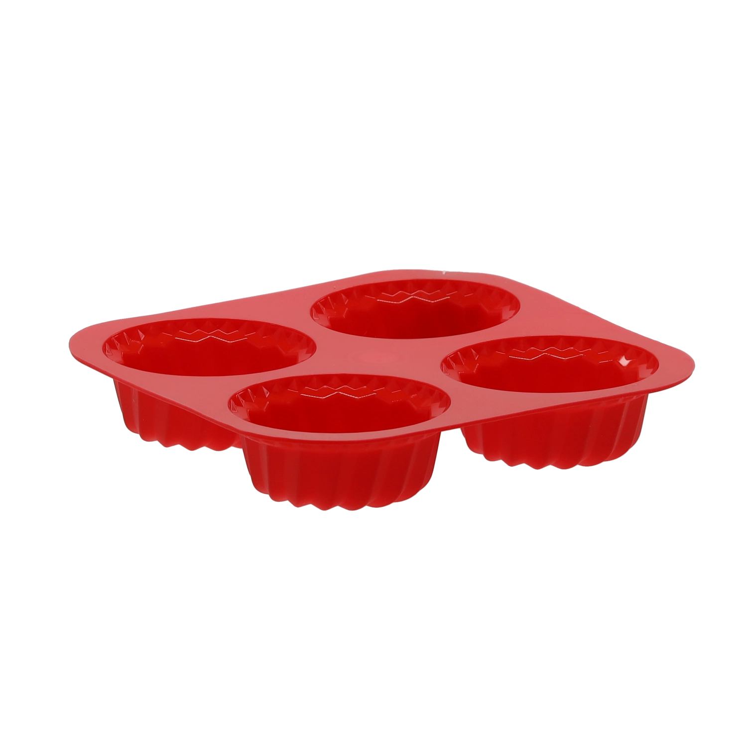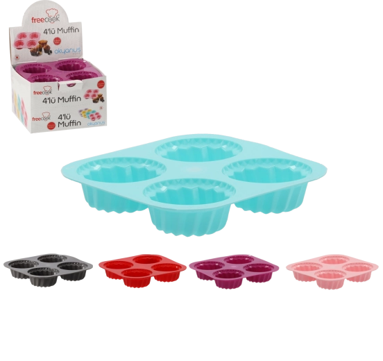Pratique moule à muffins en silicone pour cuire 4 pièces à la fois, garantissant un démoulage facile sans adhérence, un nettoyage rapide et une utilisation polyvalente du four au congélateur. Grâce à sa résistance thermique de -40 °C à +240 °C et à sa flexibilité, il est idéal pour muffins, petits gâteaux et mini entremets.