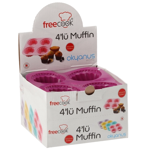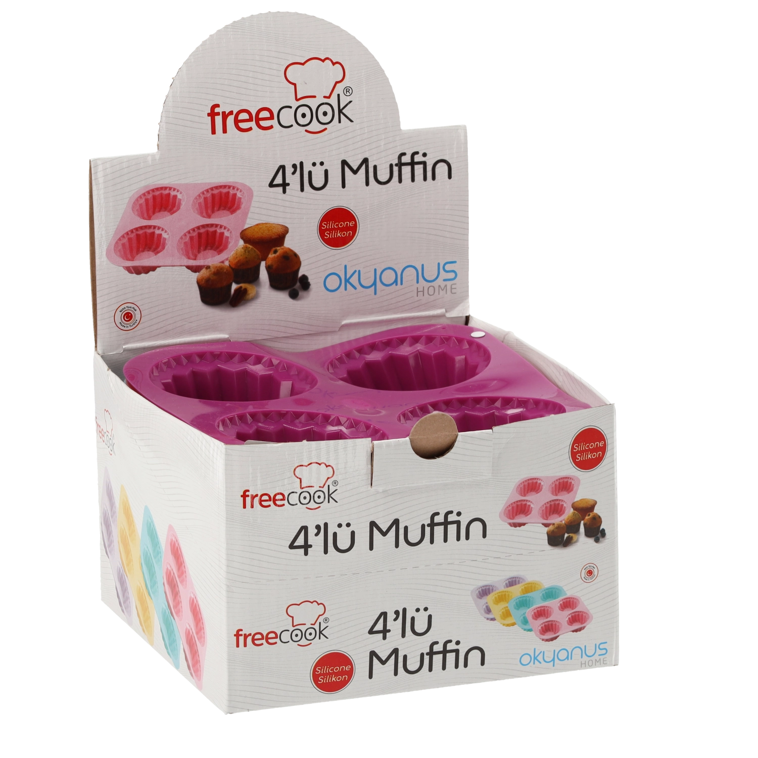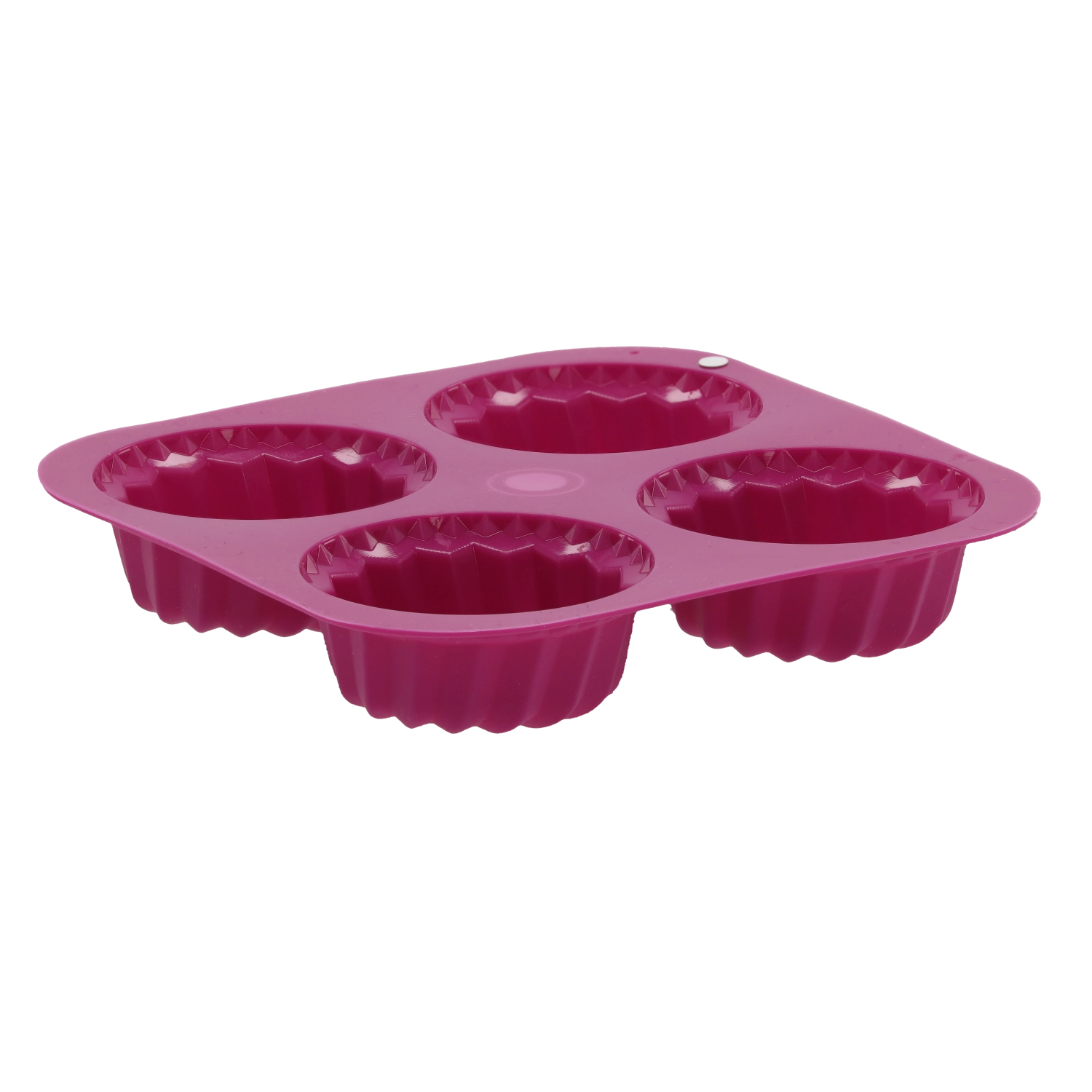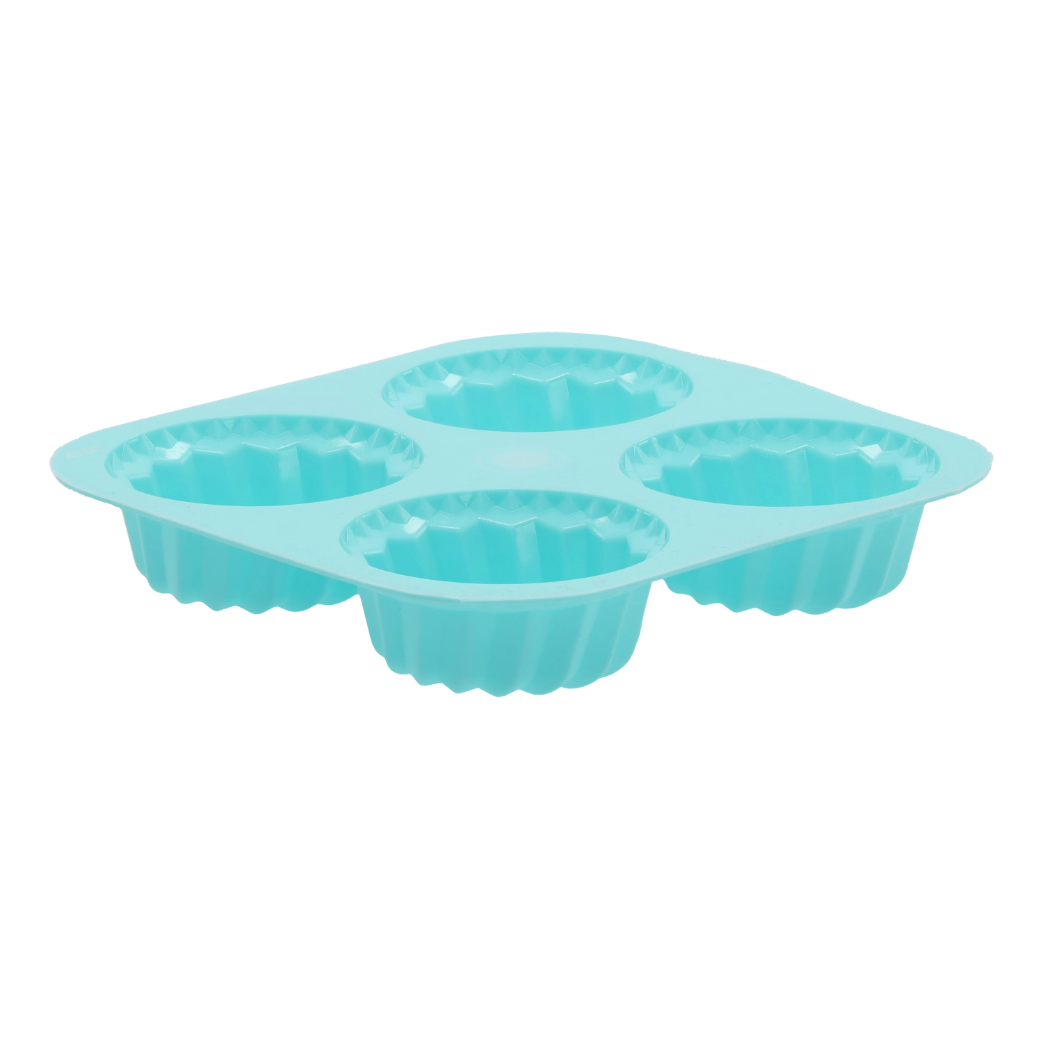 Pratique moule à muffins en silicone pour cuire 4 pièces à la fois, garantissant un démoulage facile sans adhérence, un nettoyage rapide et une utilisation polyvalente du four au congélateur. Grâce à sa résistance thermique de -40 °C à +240 °C et à sa flexibilité, il est idéal pour muffins, petits gâteaux et mini entremets.