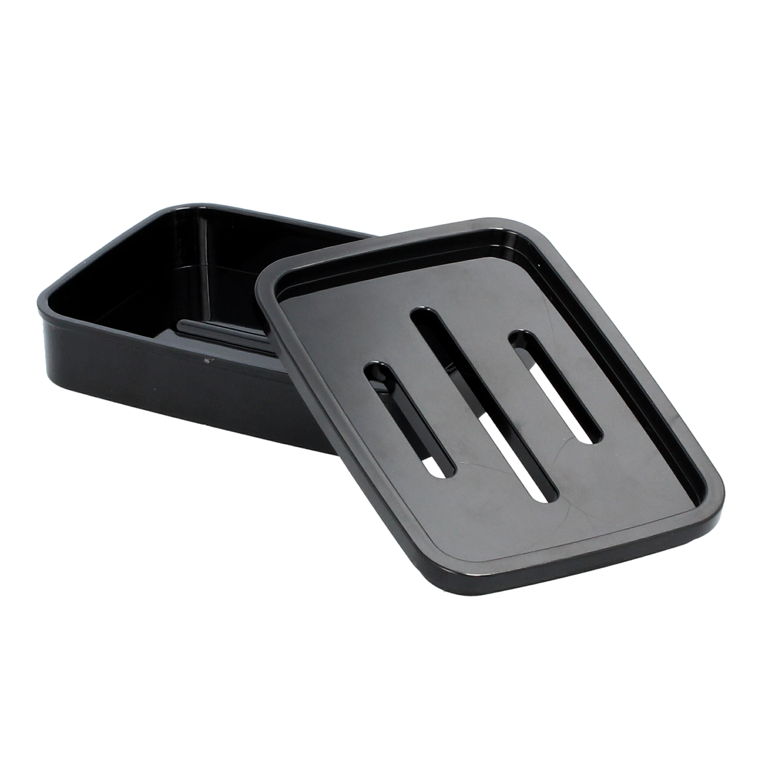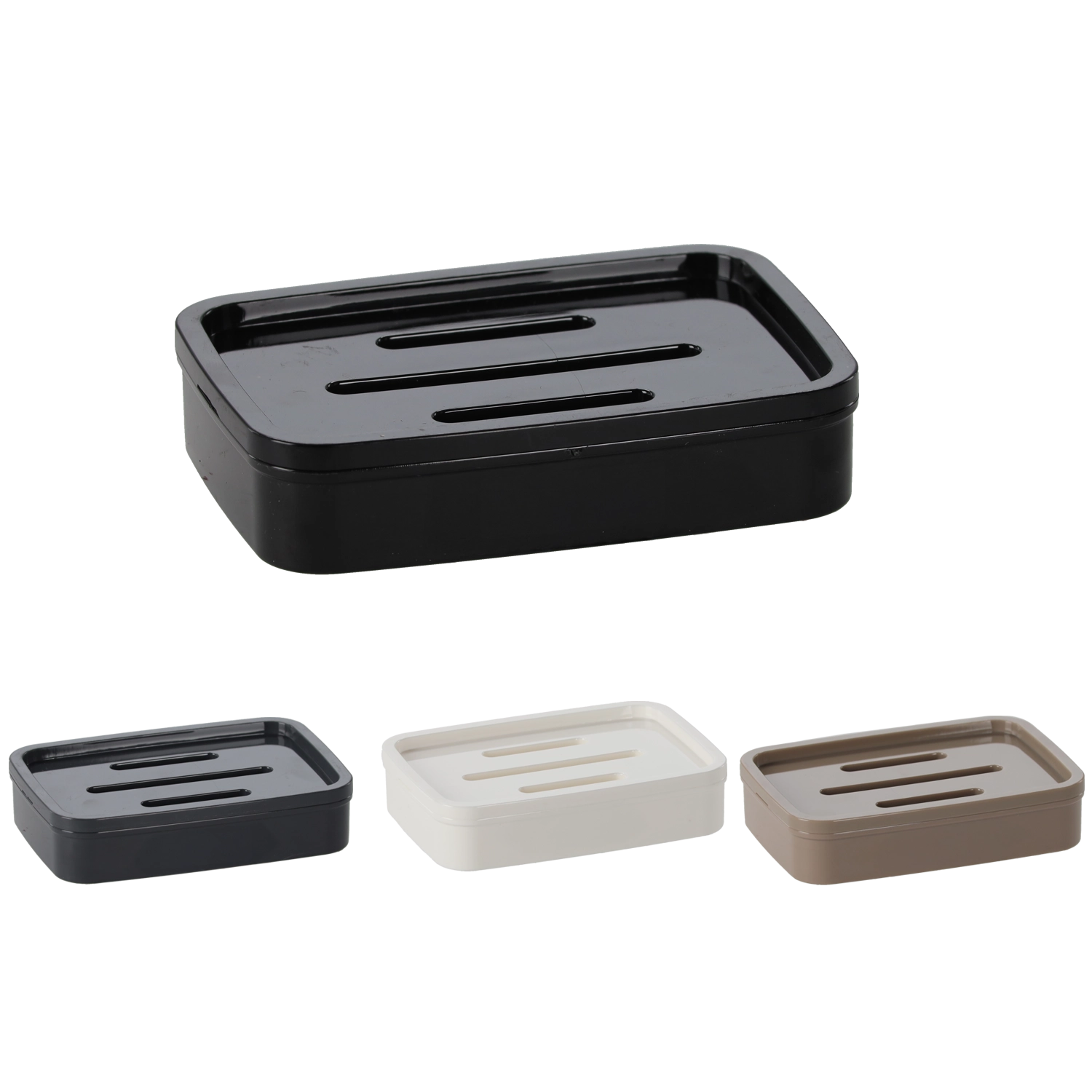 Trois fentes allongées dans le couvercle/l’insert évacuent efficacement l’eau vers le bas, gardant ainsi le savon sec et ferme.