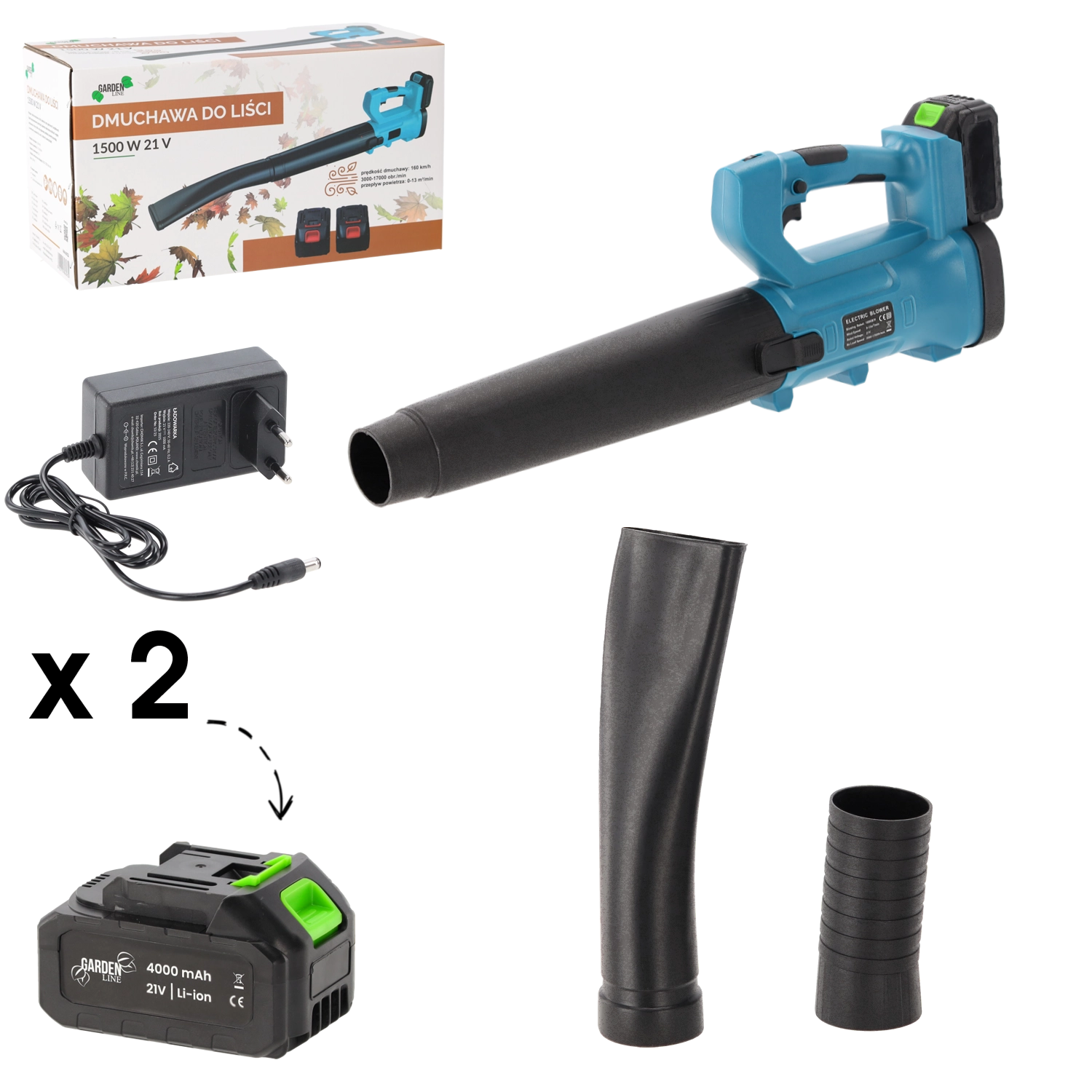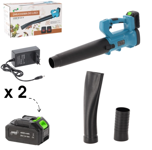 Souffleur de feuilles sans fil 21 V puissant et léger avec deux batteries 4 Ah et un chargeur, idéal pour l’entretien du jardin et des abords de la maison toute l’année. Grâce à sa conception sans fil, vous vous déplacez sans contrainte de câble ; le moteur puissant et la régulation de la vitesse de l’air assurent l’élimination rapide des feuilles, de la poussière et des petites saletés sur les allées, terrasses ou entrées. Il se distingue par sa mobilité, son ergonomie confortable et sa longue autonomie grâce aux 2× batteries Li‑ion 4 Ah.
