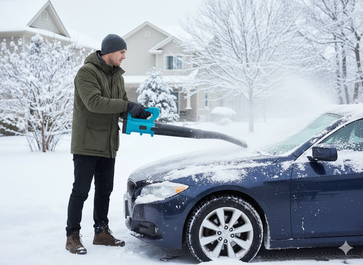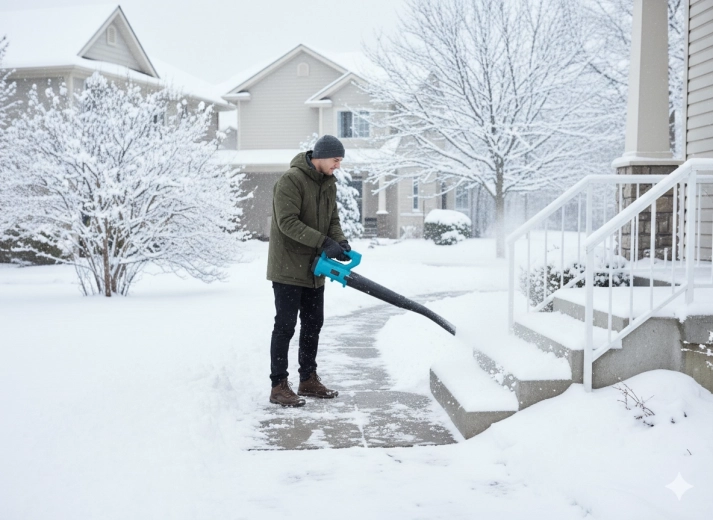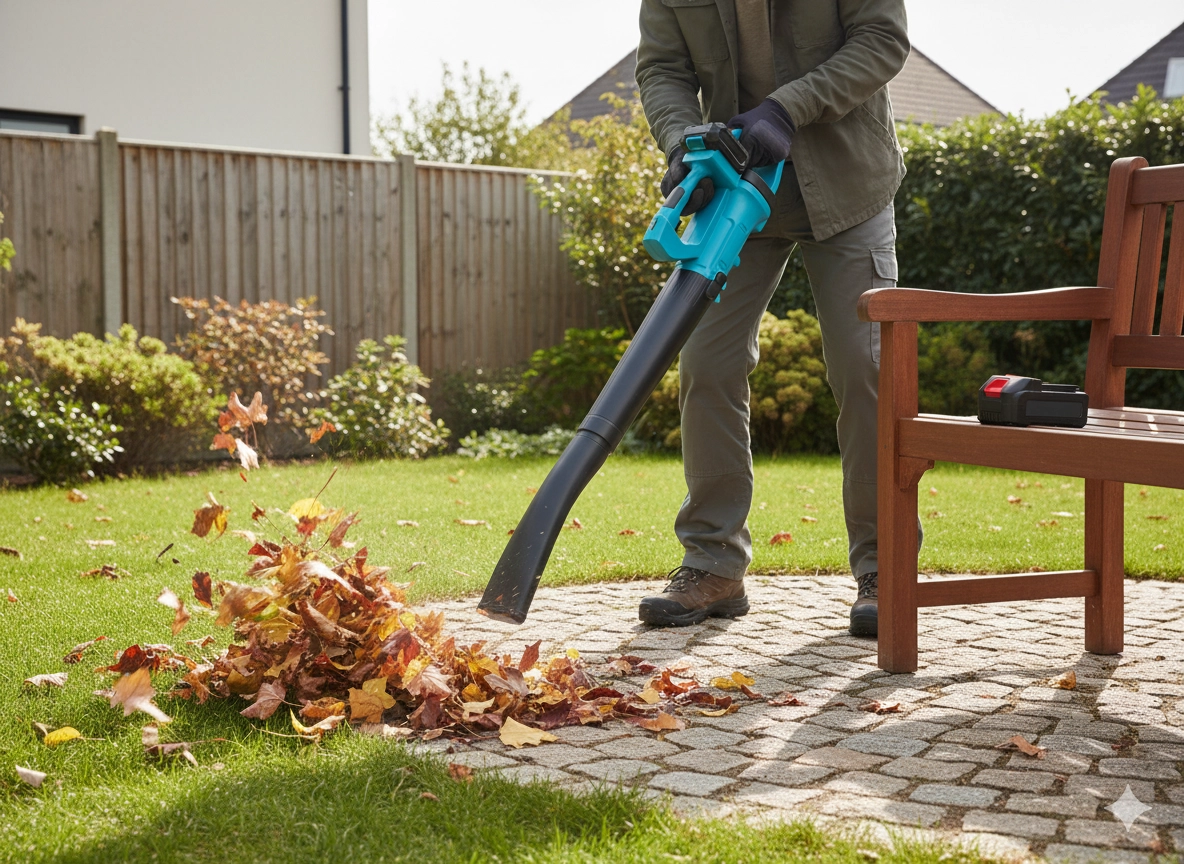 - Utilisation toute l’année : soufflage des feuilles, nettoyage des terrasses et allées, déblayage du léger manteau de neige fraîche sur la voiture, les marches ou la véranda.