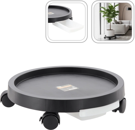 Socle rond pratique pour pot de fleurs de 40 cm de diamètre, équipé de quatre roulettes pivotantes pour déplacer facilement des plantes lourdes sans abîmer le sol. La soucoupe d’égouttage intégrée retient l’excès d’eau et maintient les alentours propres. Convient à l’intérieur, au balcon et à la terrasse, avec une capacité de charge jusqu’à 40 kg.