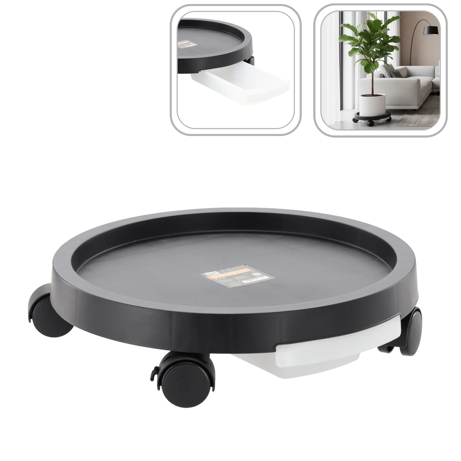 Simplifiez l’entretien de vos plantes avec un socle roulant robuste. Quatre roulettes à rotation fluide permettent un déplacement aisé et sécurisé des pots lors du nettoyage ou pour les orienter vers la lumière. Le bord surélevé et la base ajourée contribuent à garder le pot bien stable.