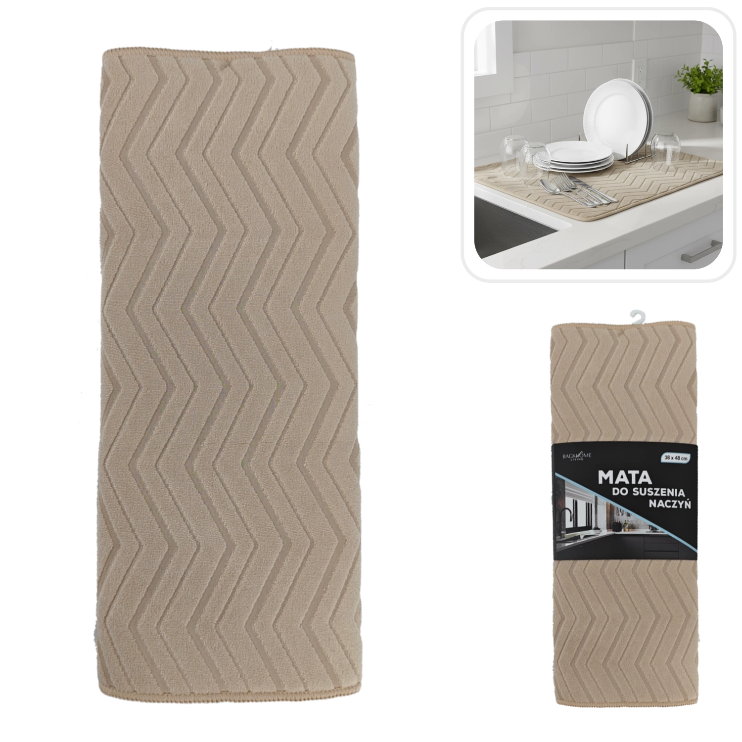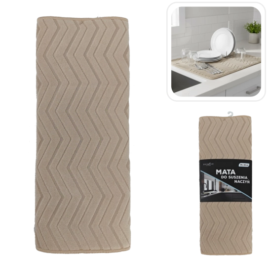 Pratique, le tapis de séchage de 38 × 48 cm en microfibre de polyester de qualité accélère le séchage de la vaisselle et protège le plan de travail des éclaboussures. Grâce à sa haute capacité d’absorption et à sa texture douce, il est idéal pour les verres fragiles et la porcelaine, en minimisant les rayures et les risques de casse. Entretien facile – le tapis se lave en machine jusqu’à 30 °C et se plie aisément grâce à ses dimensions compactes.