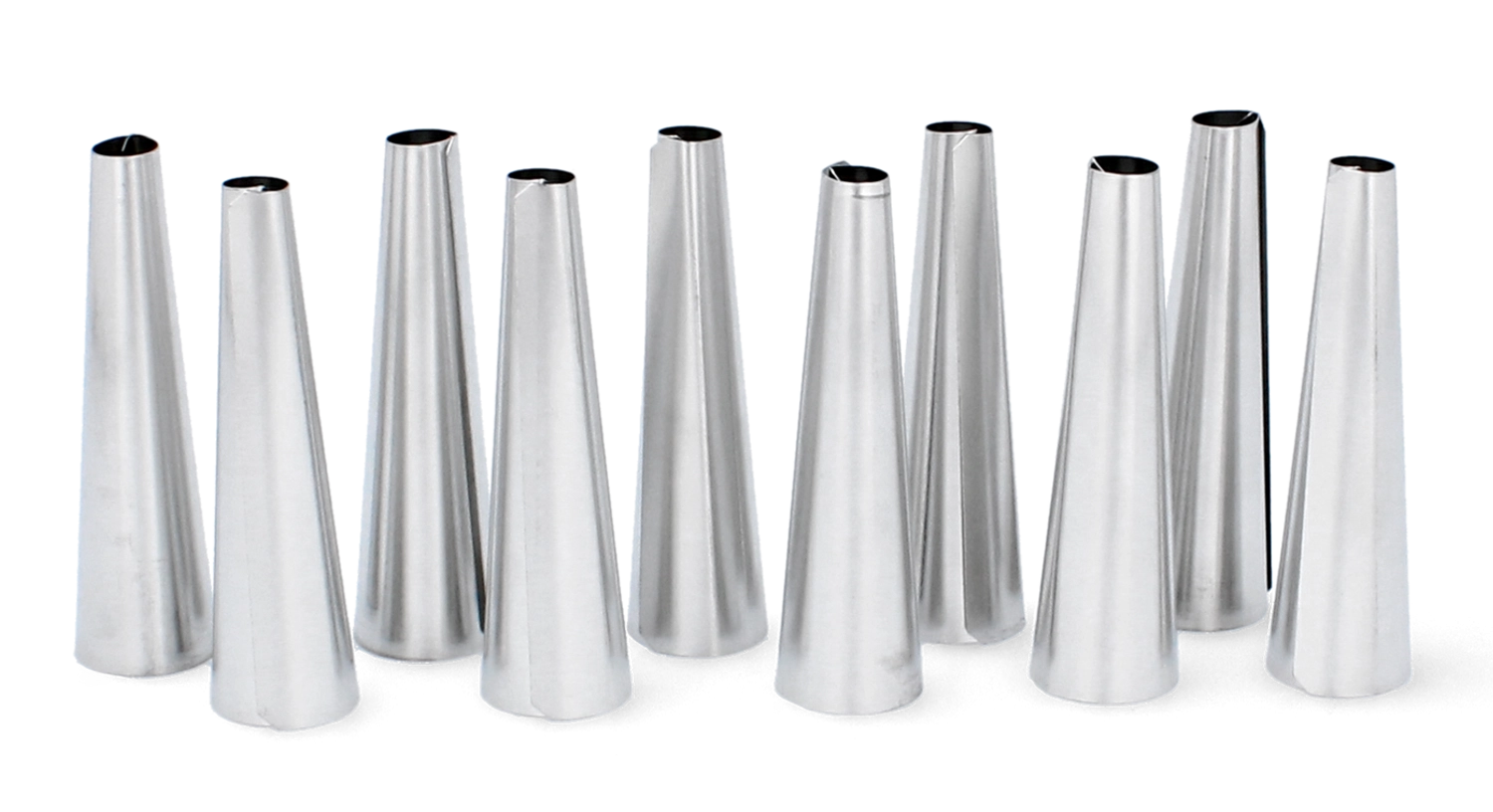 Pratique, ce set de 10 moules de cuisson pour cornets en acier résistant vous permet de créer des rouleaux parfaitement formés pour des garnitures sucrées ou salées. Grâce à leur forme conique et à leurs dimensions compactes, la pâte se façonne facilement et se retire aisément après la cuisson. Les moules sont fabriqués dans un matériau de haute qualité, supportent des températures allant jusqu’à 230 °C, sont durables, faciles à nettoyer et adaptés à une utilisation répétée.