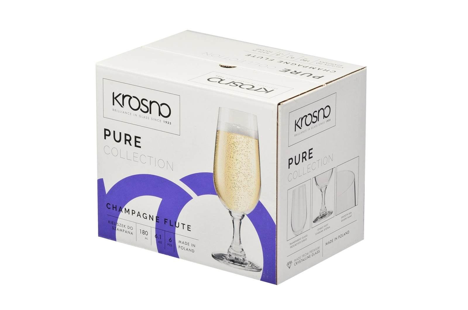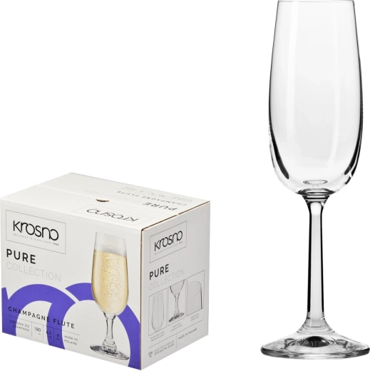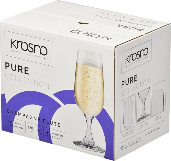 Dégustez les vins effervescents avec style grâce au set de flûtes à champagne Krosno PURE d’une capacité de 170 ml. Grâce au pied haut et à la base stable, les verres paraissent élégants tout en offrant une prise en main confortable. Le verre sans plomb Crystalline, d’une pureté cristalline, met en valeur la couleur de la boisson et en préserve la fraîcheur.