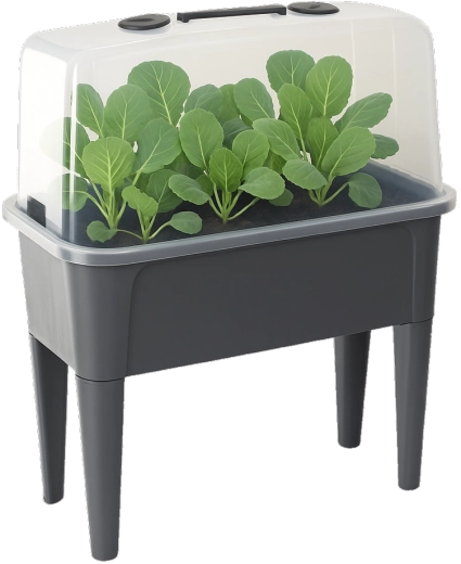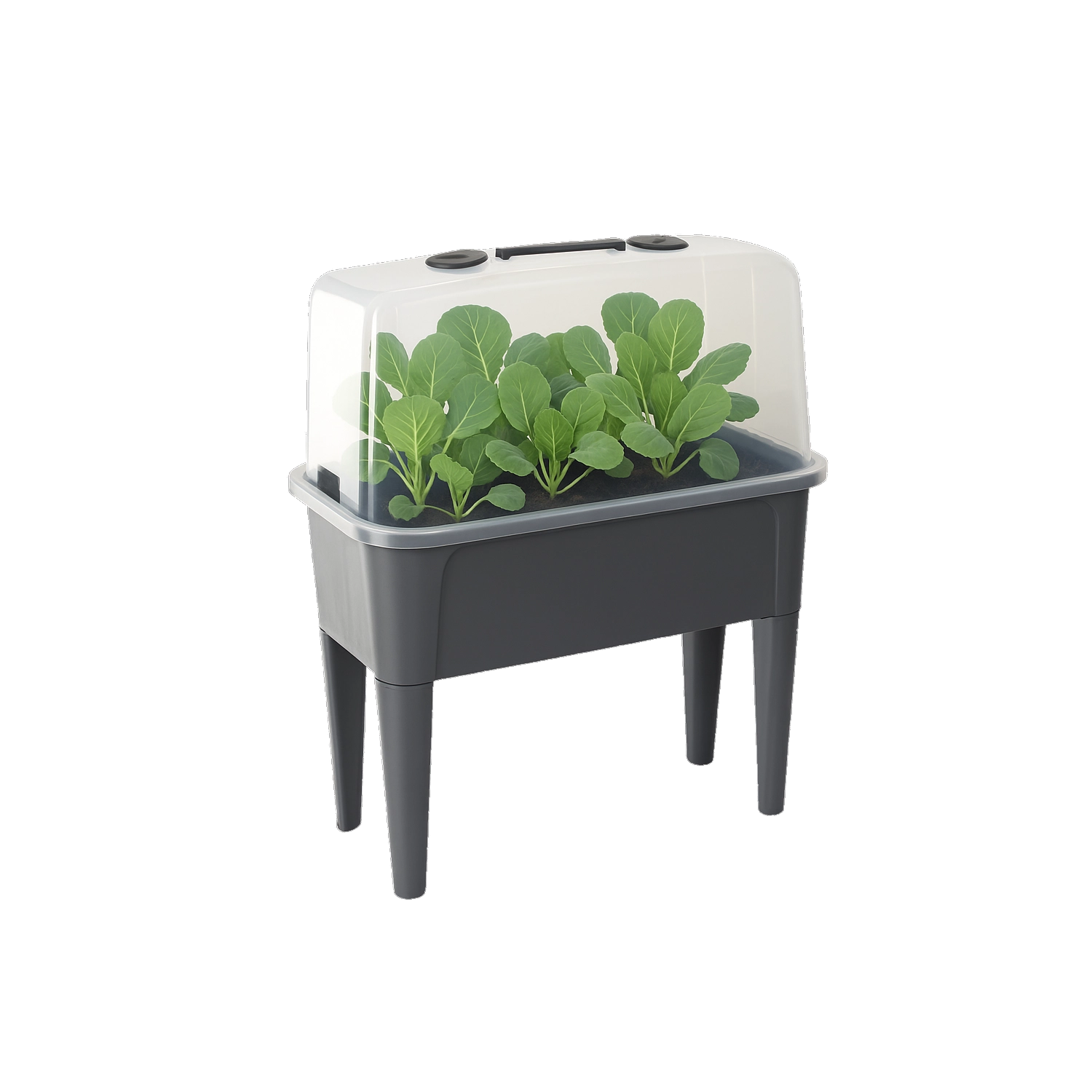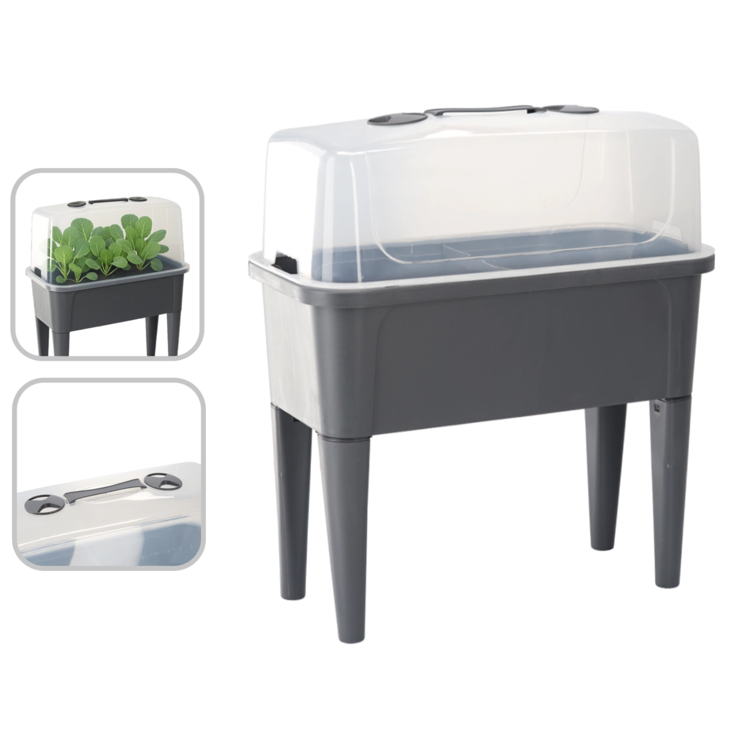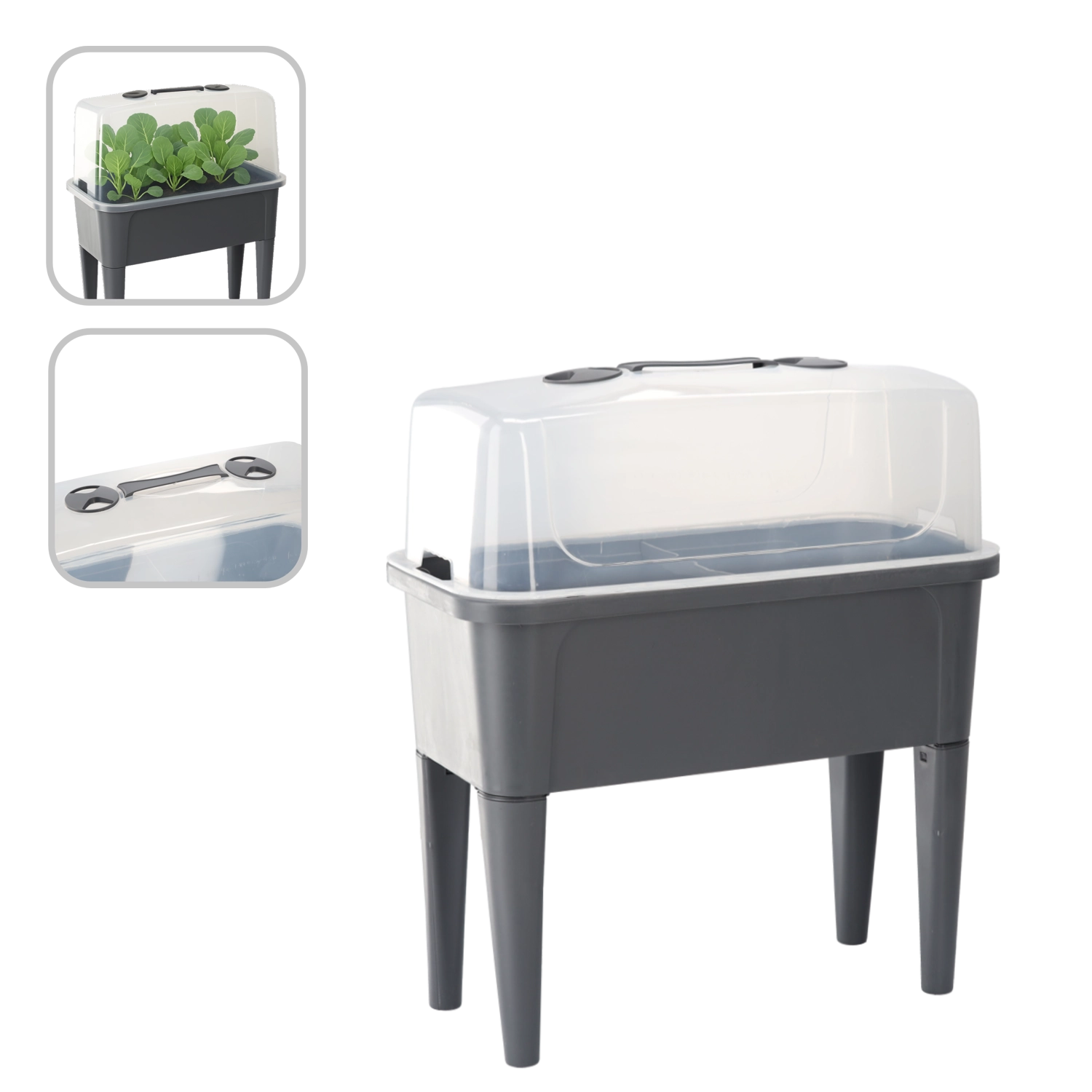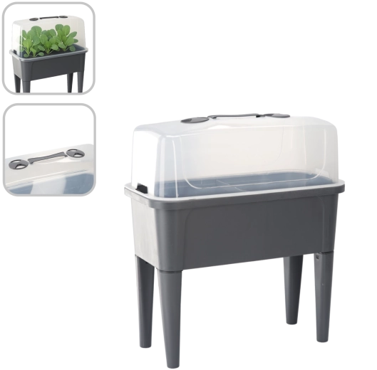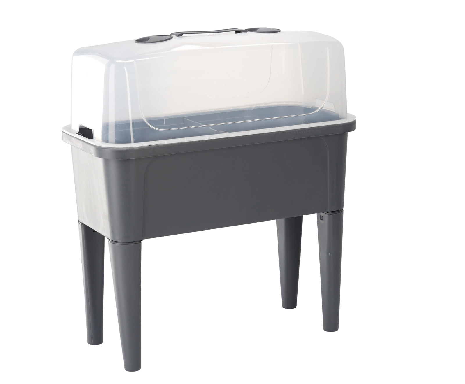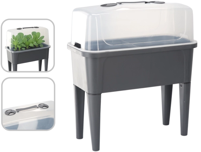 Cette mini-serre pratique sur pieds allie le confort d’un carré potager surélevé à une protection efficace contre les intempéries. La cloche transparente maintient une chaleur et une humidité constantes pour un départ rapide des semis, l’enracinement des boutures et la culture des herbes. Grâce aux ouvertures de ventilation sur le couvercle, vous contrôlez entièrement la circulation de l’air.
