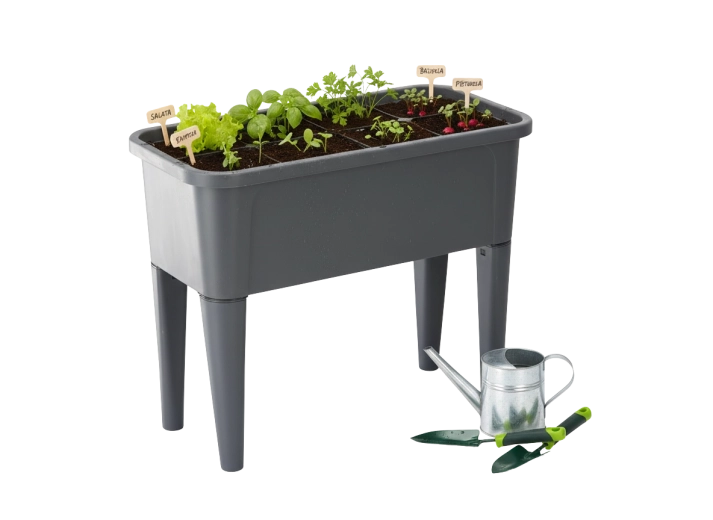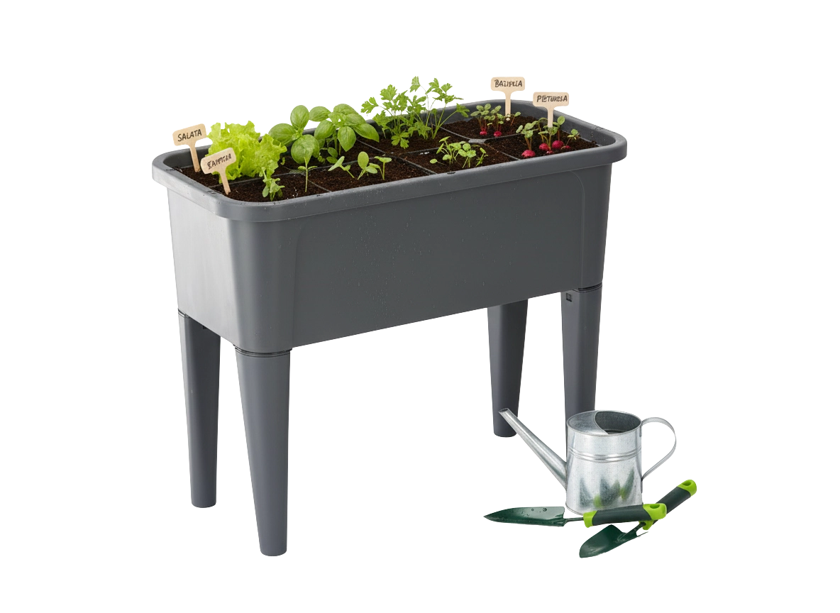 Le corps robuste en PP résistant supporte les conditions variables toute l’année et la couleur anthracite s’accorde aux extérieurs modernes. La hauteur de 83 cm ménage le dos et facilite l’arrosage comme l’entretien, que vous cultiviez sur une terrasse, un balcon ou près de bacs surélevés.