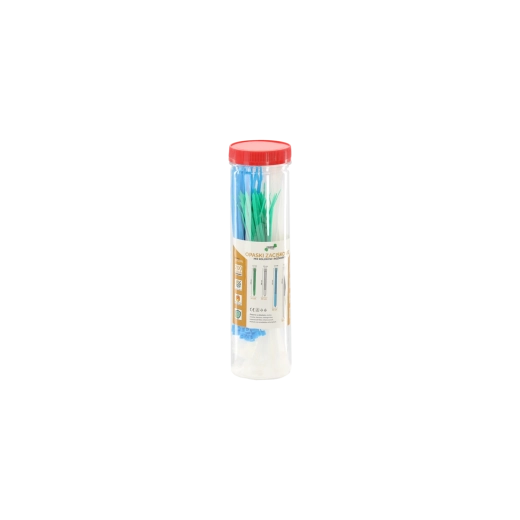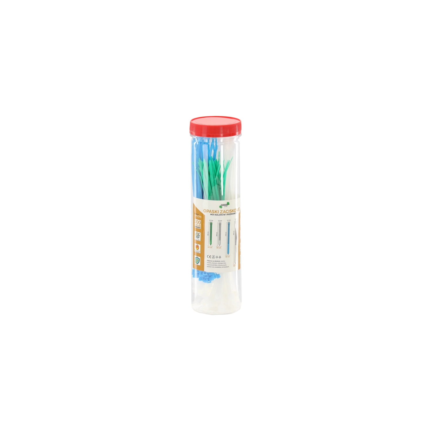 50 pcs 2,5 × 100 mm – verts ; 50 pcs 2,5 × 100 mm – blancs ; 50 pcs 2,5 × 150 mm – bleus ; 50 pcs 3,6 × 200 mm – blancs