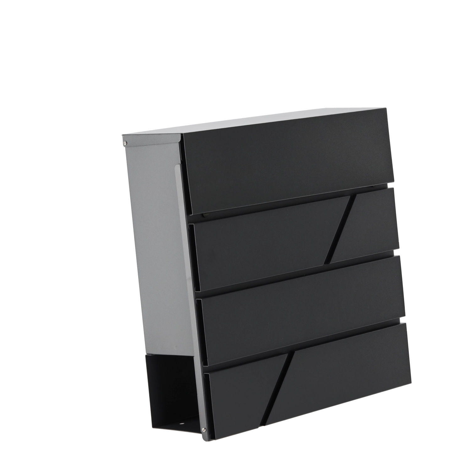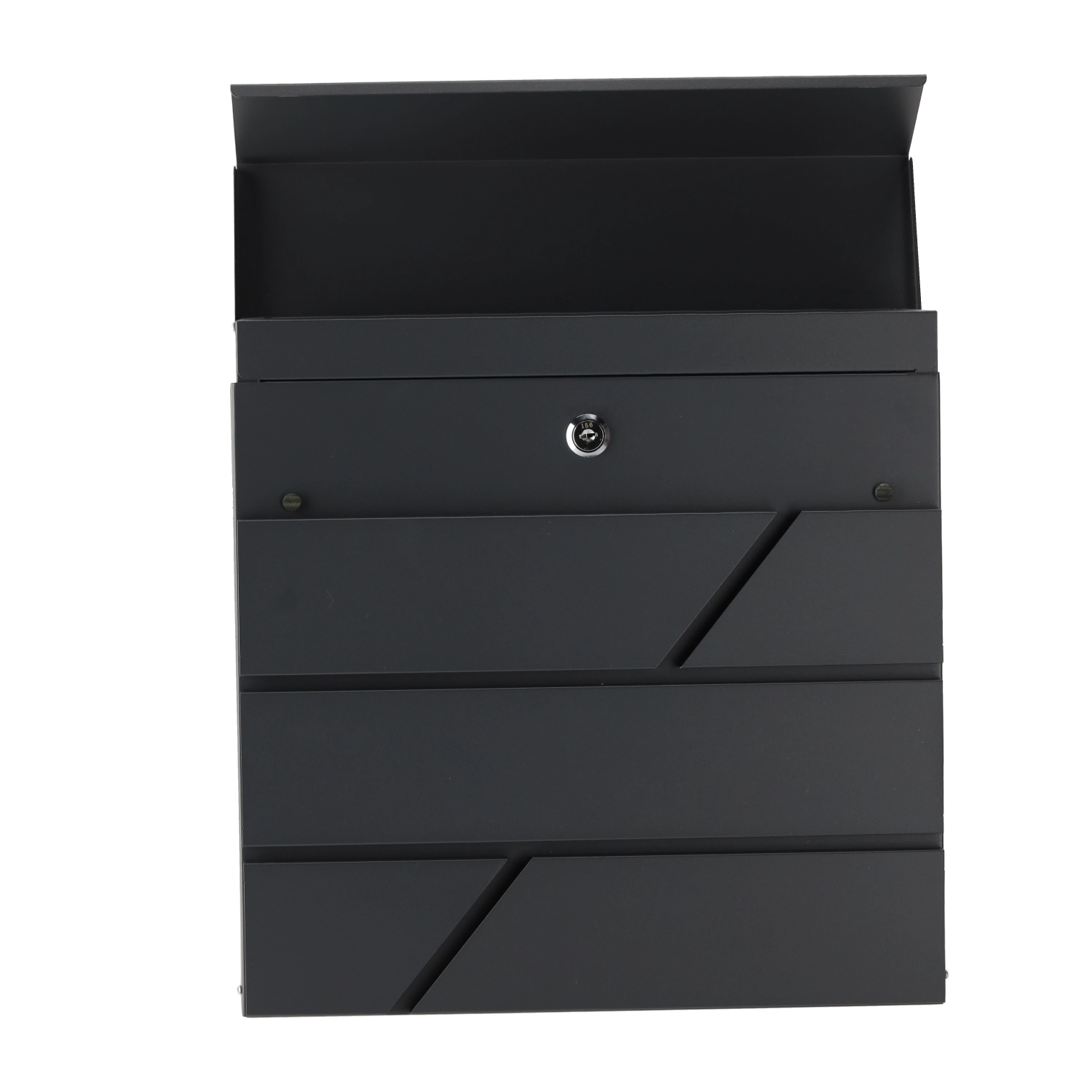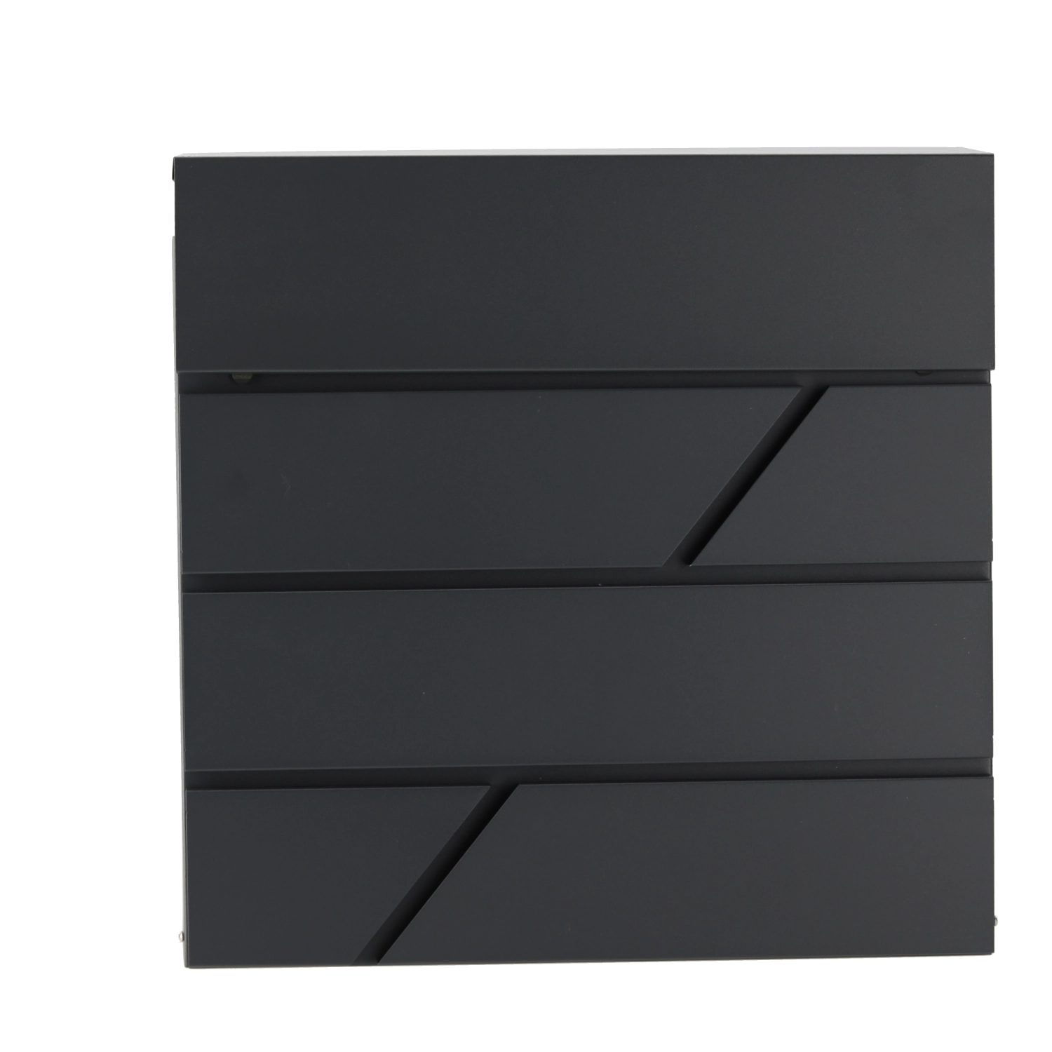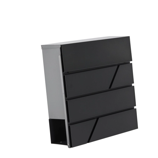 Grâce à ses dimensions compactes de 37 × 37 × 10,5 cm et à son esthétique moderne, la boîte s’intègre facilement sur la façade d’une maison, d’un immeuble ou d’un bureau. L’insertion simple du courrier et l’accès pratique par l’avant facilitent l’usage au quotidien.