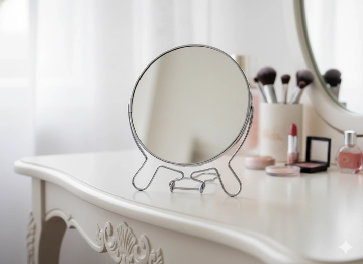 Élégant miroir de maquillage aux dimensions compactes, idéal pour le sac à main et les voyages. Il offre des reflets nets et fidèles sans distorsion, une construction légère et un design élégant, ce qui en fait un choix parfait pour les soins quotidiens de la peau ainsi qu’un excellent cadeau.