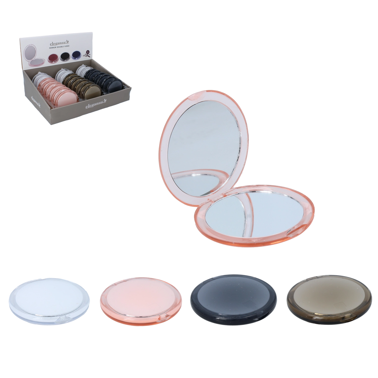 Deux surfaces miroir opposées offrent un reflet net, idéal pour un contrôle rapide comme pour des ajustements détaillés du maquillage et de la coiffure.