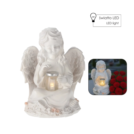 Élégante figurine d’ange en résine résistante avec éclairage LED solaire intégré : elle orne le jour et diffuse, à la nuit tombée, une lumière douce et apaisante pendant 6 à 8 heures. Grâce à la recharge automatique sans câbles ni piles, elle est idéale pour le jardin, la terrasse et les lieux de recueillement. Résistante à la pluie, au gel et au soleil, elle crée une atmosphère chaleureuse.