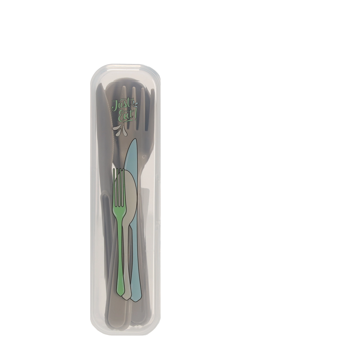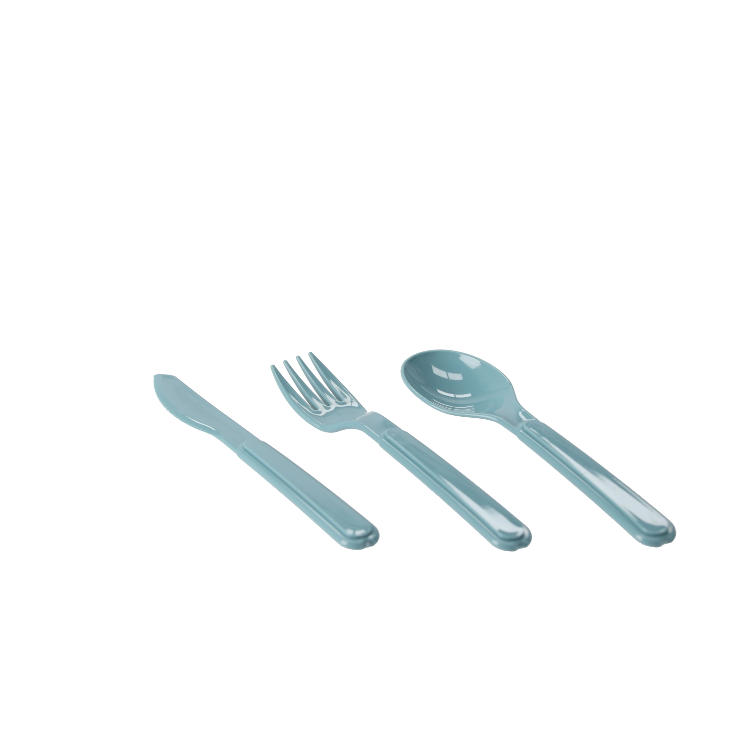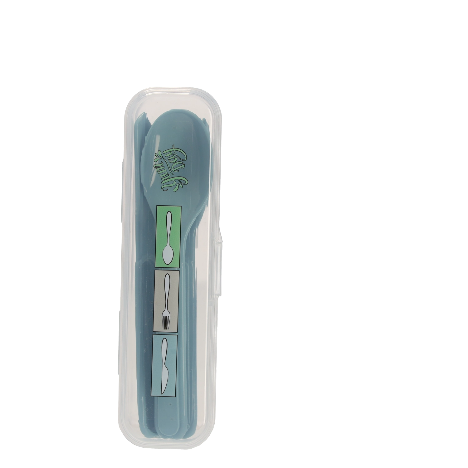 Couverts de voyage en plastique avec étui – cuillère, fourchette et couteau, bleu
