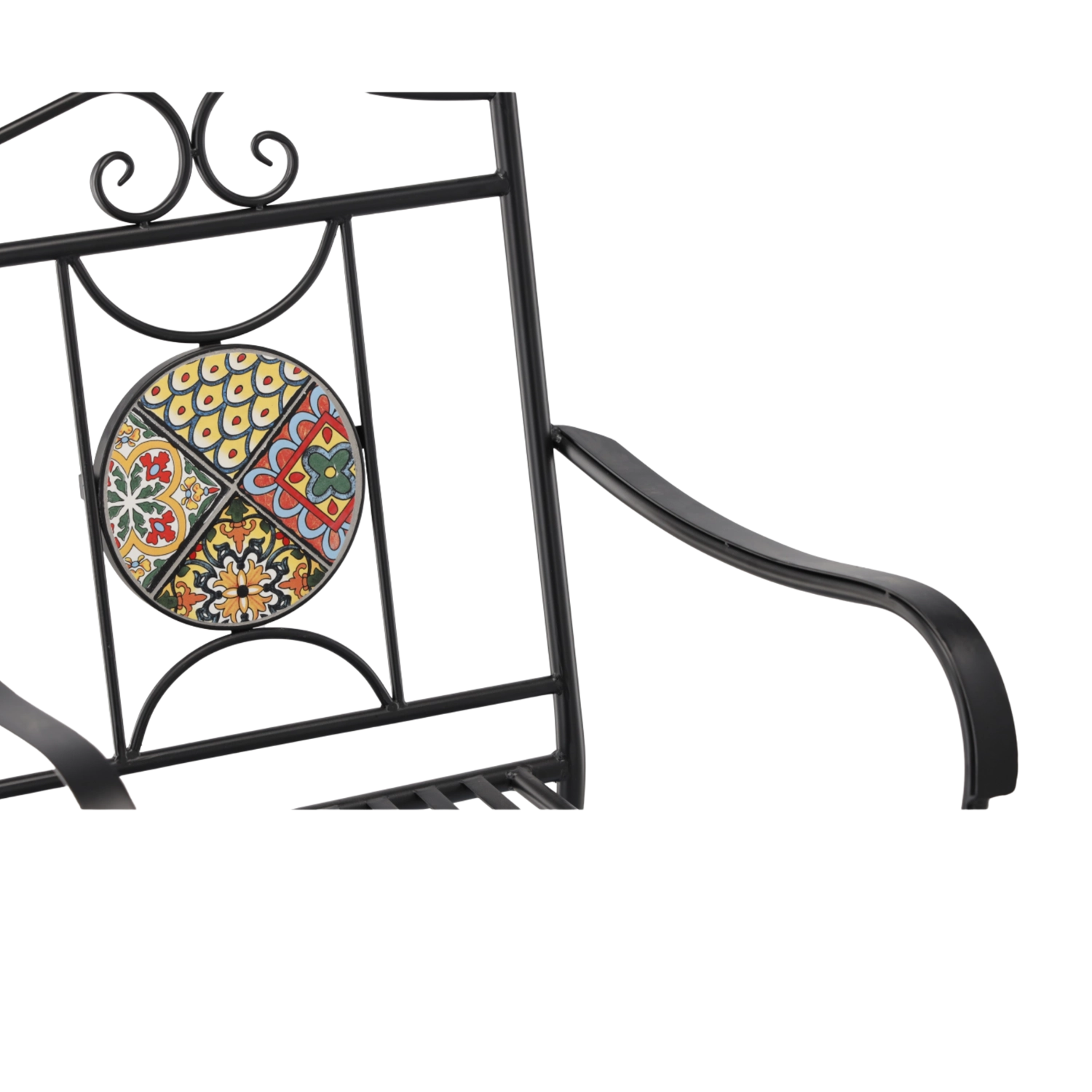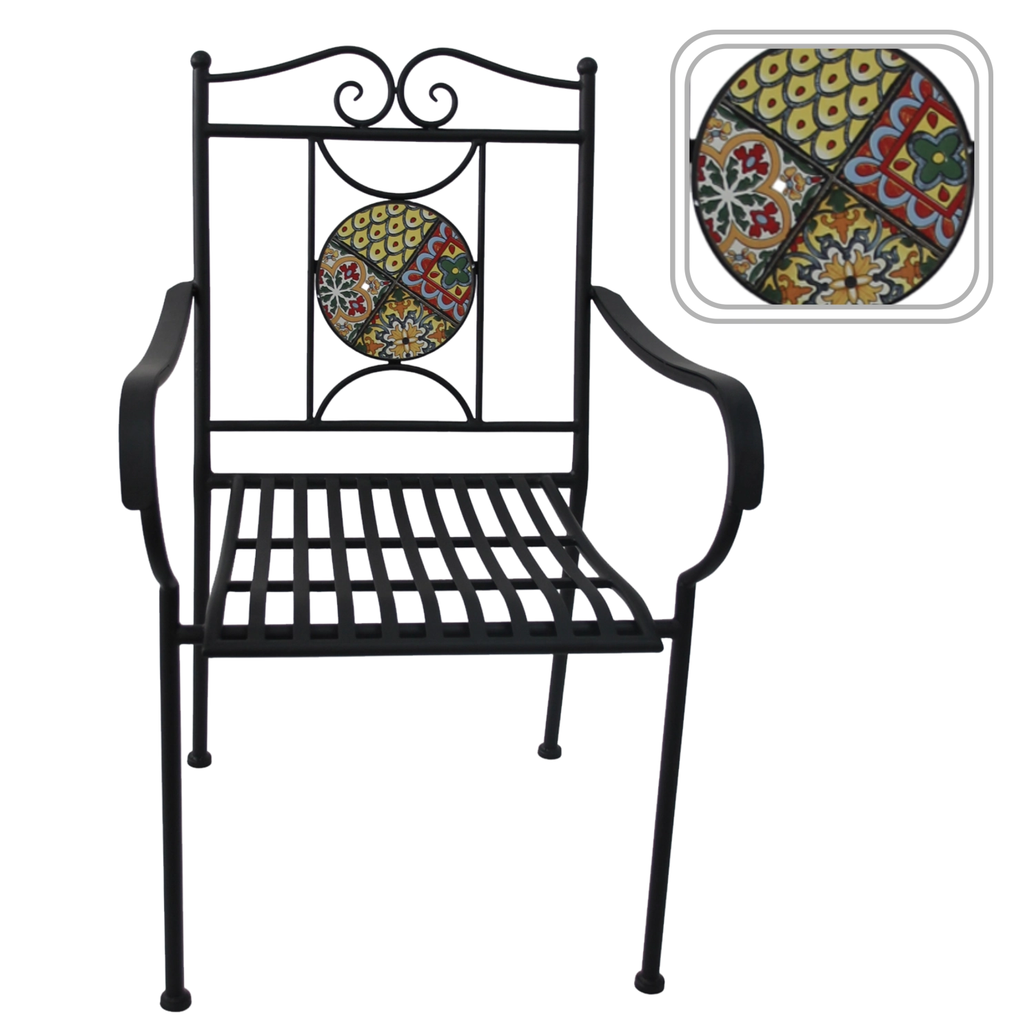 Apportez une touche d’élégance méditerranéenne à votre terrasse ou votre jardin. Le fauteuil de jardin à mosaïque en métal résistant combine une mosaïque décorative dans le dossier avec une structure stable et une assise confortable. Idéal pour le balcon, le patio et le jardin – pour une détente stylée à ciel ouvert.