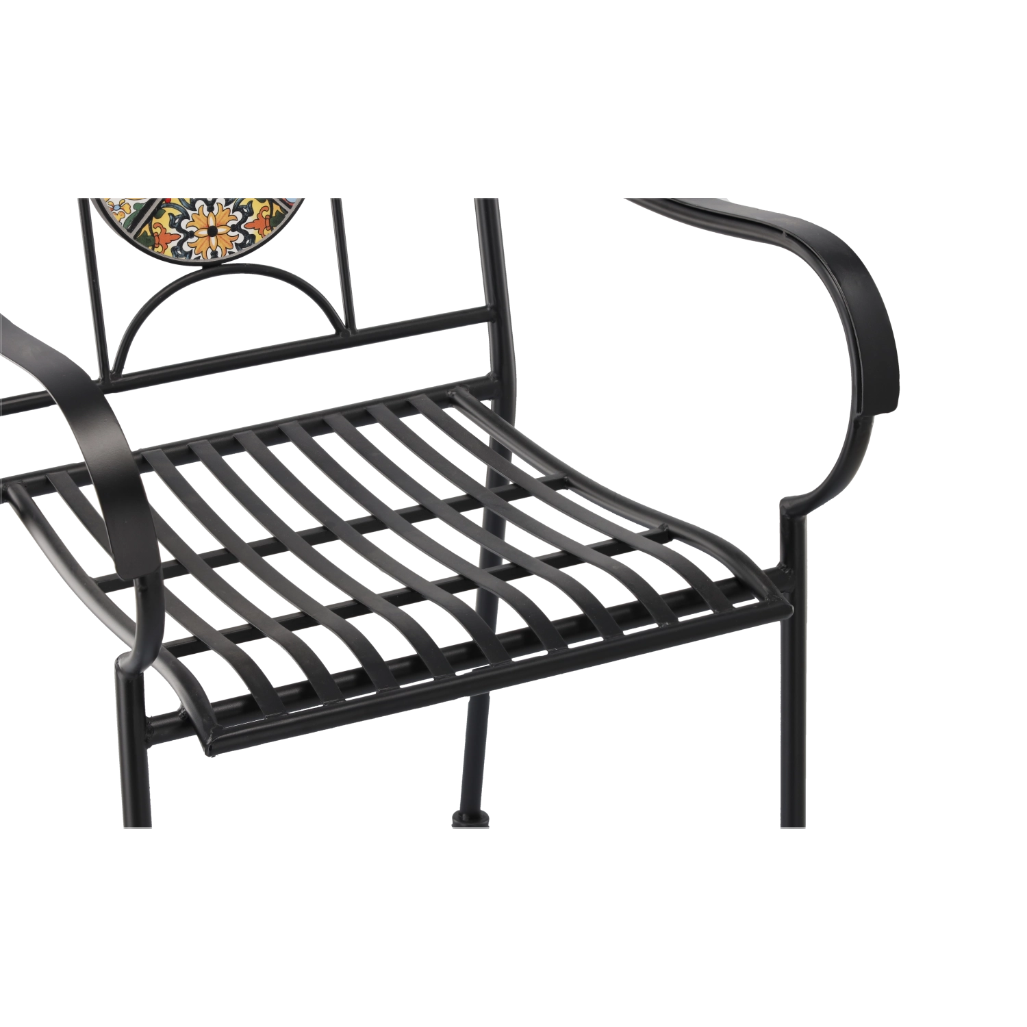 Le médaillon circulaire en mosaïque dans le dossier confère au fauteuil un style affirmé et devient l’ornement de tout espace extérieur.