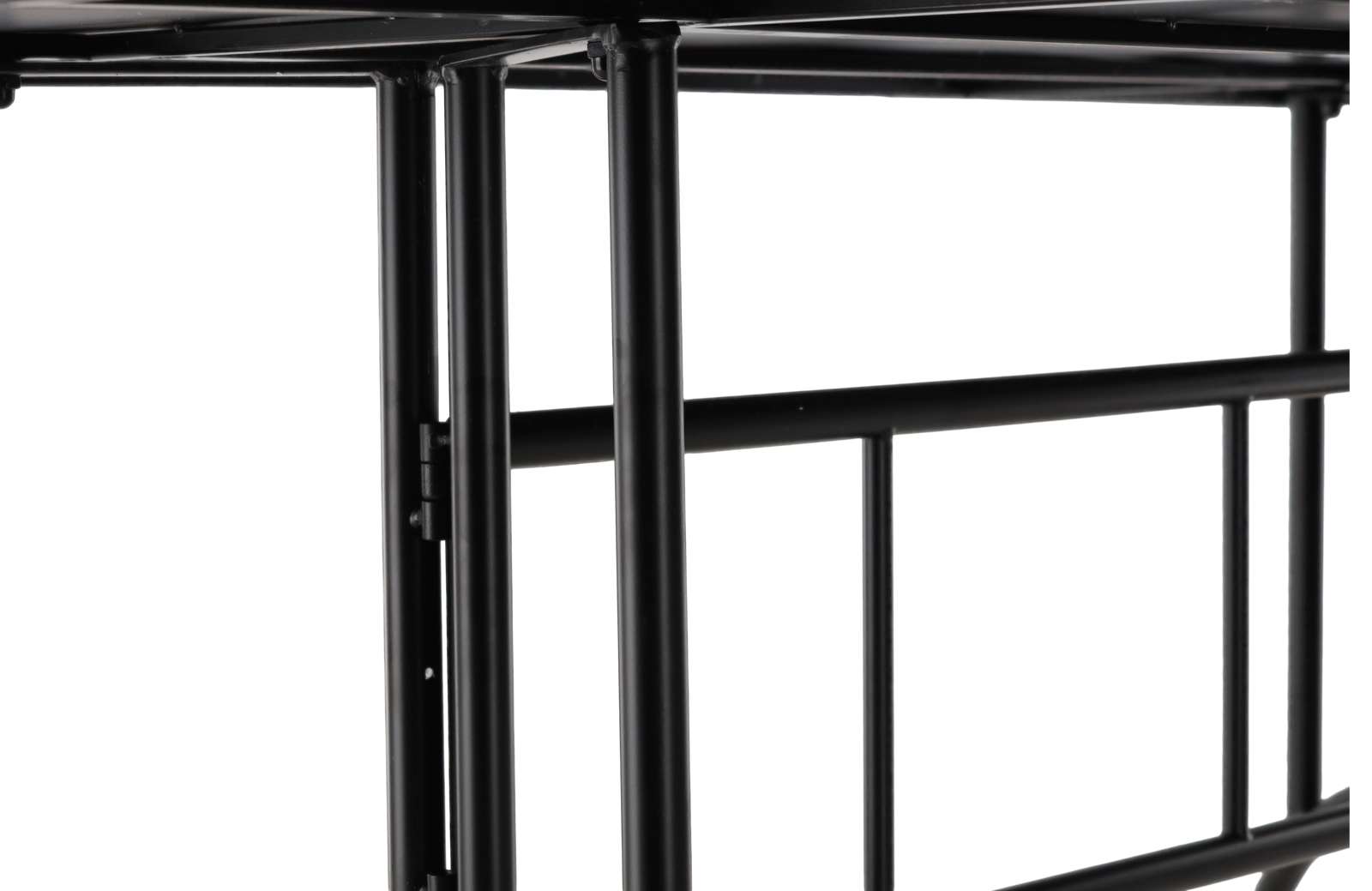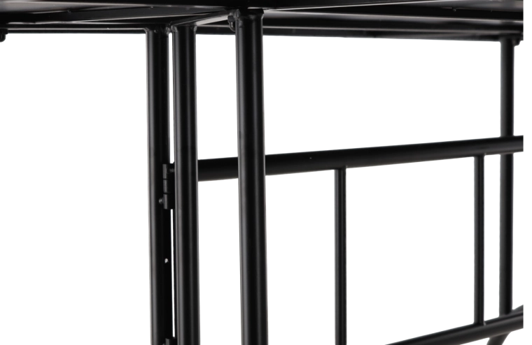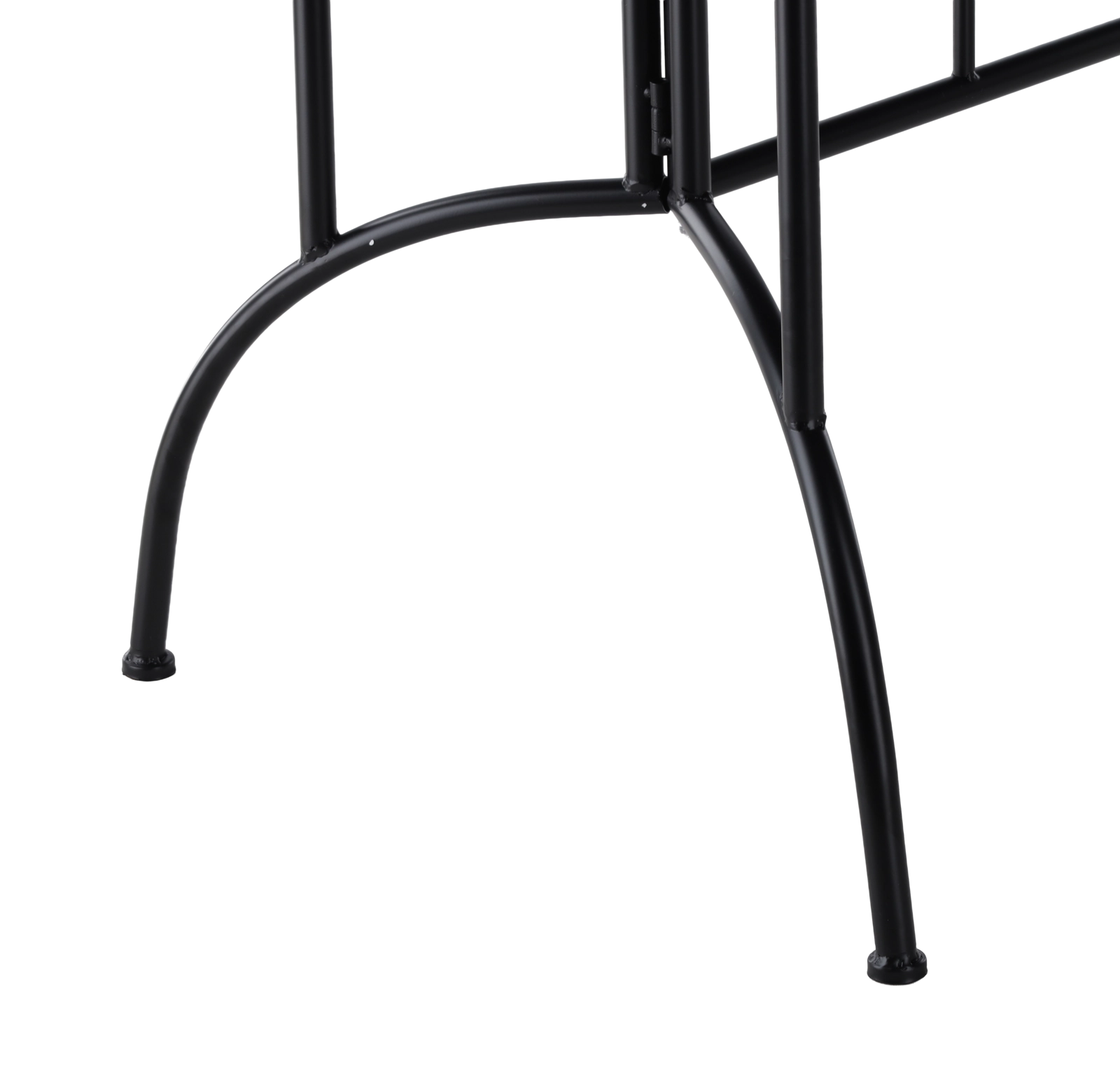 Le piètement en métal noir avec renforts croisés et éléments courbés assure une excellente stabilité et une grande résistance à l’usage quotidien sur terrasse ou au jardin.