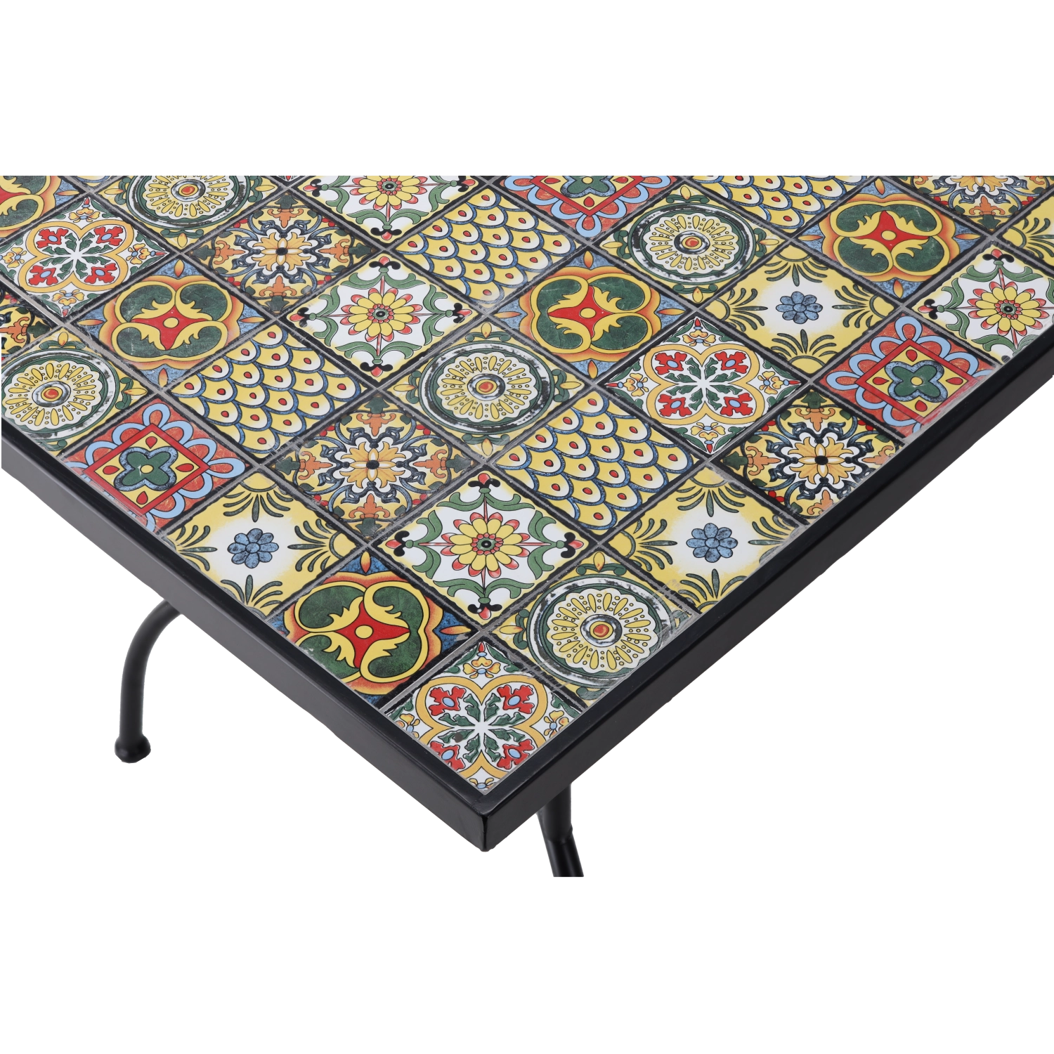 Des motifs géométriques et végétaux colorés composent une mosaïque au style unique, apportant du caractère à votre espace extérieur. La surface lisse se nettoie aisément après chaque utilisation.
