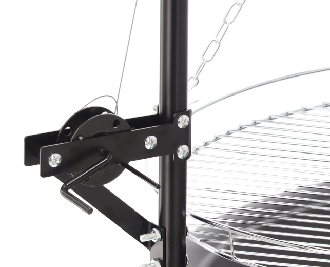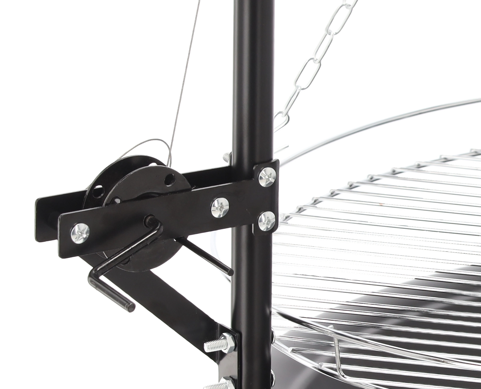 La grille circulaire chromée de 50 cm de diamètre offre suffisamment d’espace pour cuisiner pour toute la famille. La commande simple du levage de la grille (chaînes/manivelle selon la version) permet une cuisson précise sans brûler les aliments. Le design métallique minimaliste s’intègre à tout jardin, chalet ou terrasse.