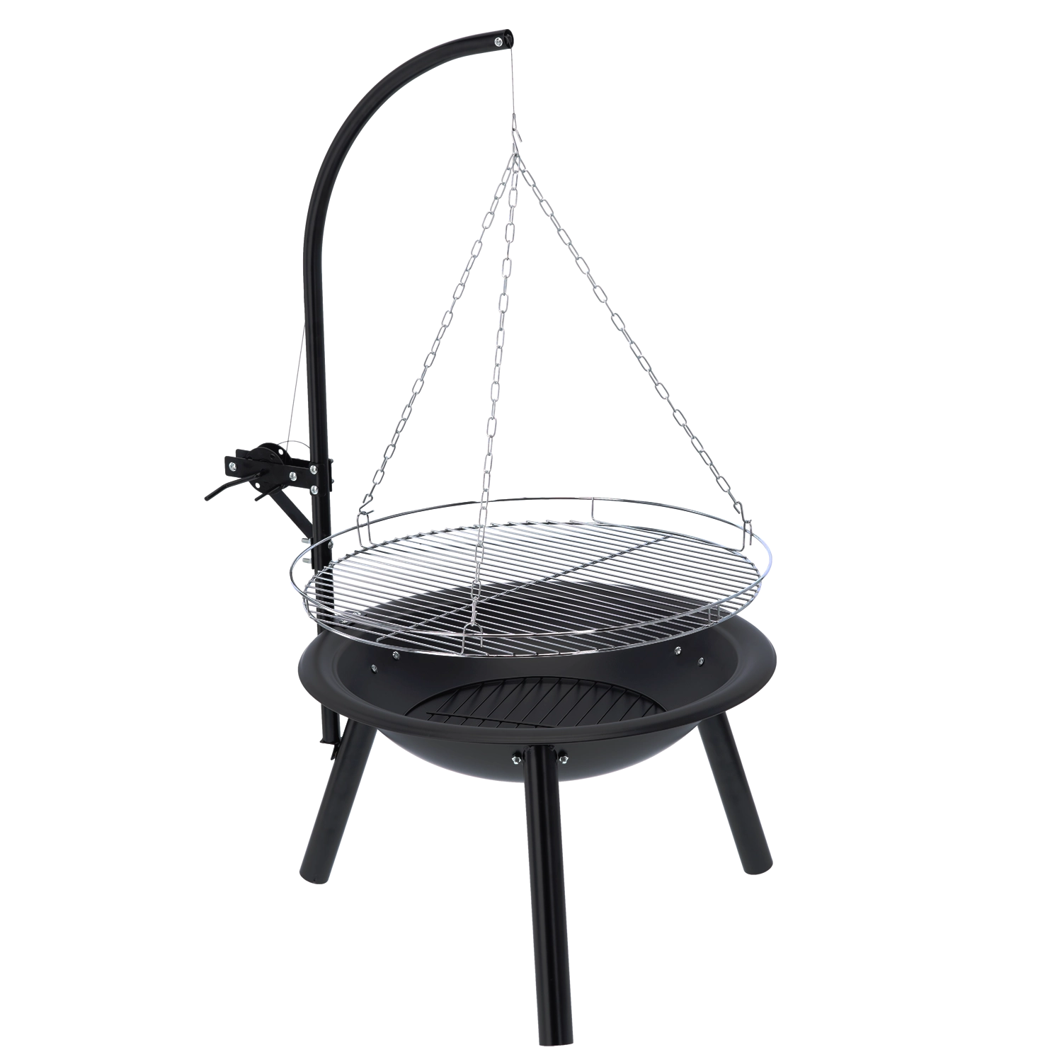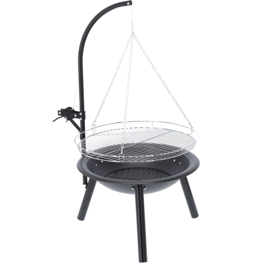 Profitez du goût authentique des plats préparés sur feu ouvert. Le gril suspendu combine le charme traditionnel du brasero avec la praticité d’une grille réglable en hauteur, afin d’adapter facilement l’intensité de la chaleur aux différents types de viande, légumes et fromages. Le trépied stable et la cuve de brasero robuste garantissent une utilisation sûre et une longue durée de vie.