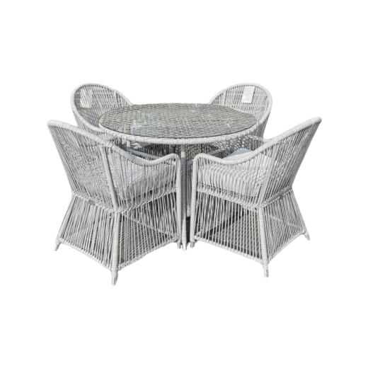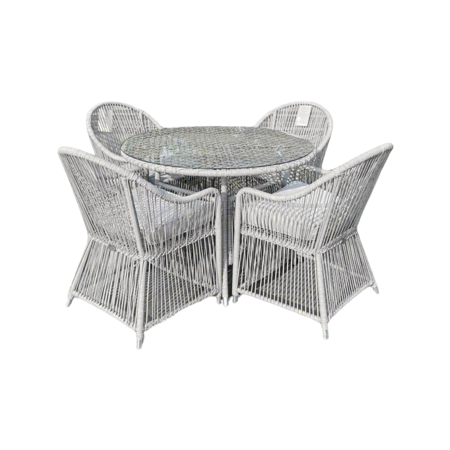 Créez un espace convivial sur votre jardin, terrasse ou balcon. Cet élégant ensemble d’extérieur avec 4 fauteuils confortables et une table ronde allie look rotin moderne, structure en aluminium durable et entretien facile. La finition grise avec des coussins moelleux offre une allure légère et intemporelle, idéale pour les extérieurs modernes comme classiques.