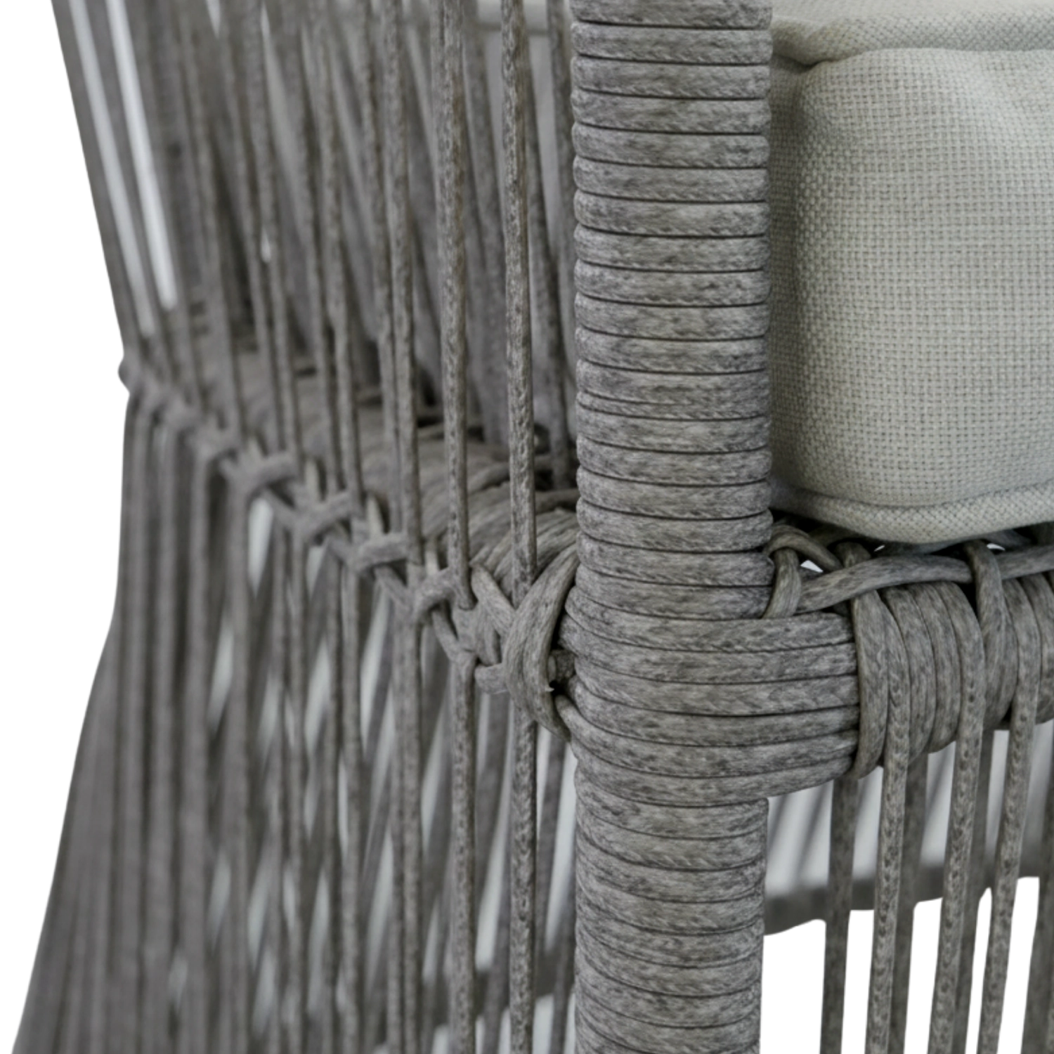L’ensemble est conçu pour un confort quotidien et une longue durée de vie. Les cadres en aluminium, légers mais stables, résistent à la corrosion et aux variations de météo. Le tressage ouvert en rotin apporte légèreté et style, tandis que les assises de 8 cm d’épaisseur avec housses amovibles assurent une assise agréable et un nettoyage facile.