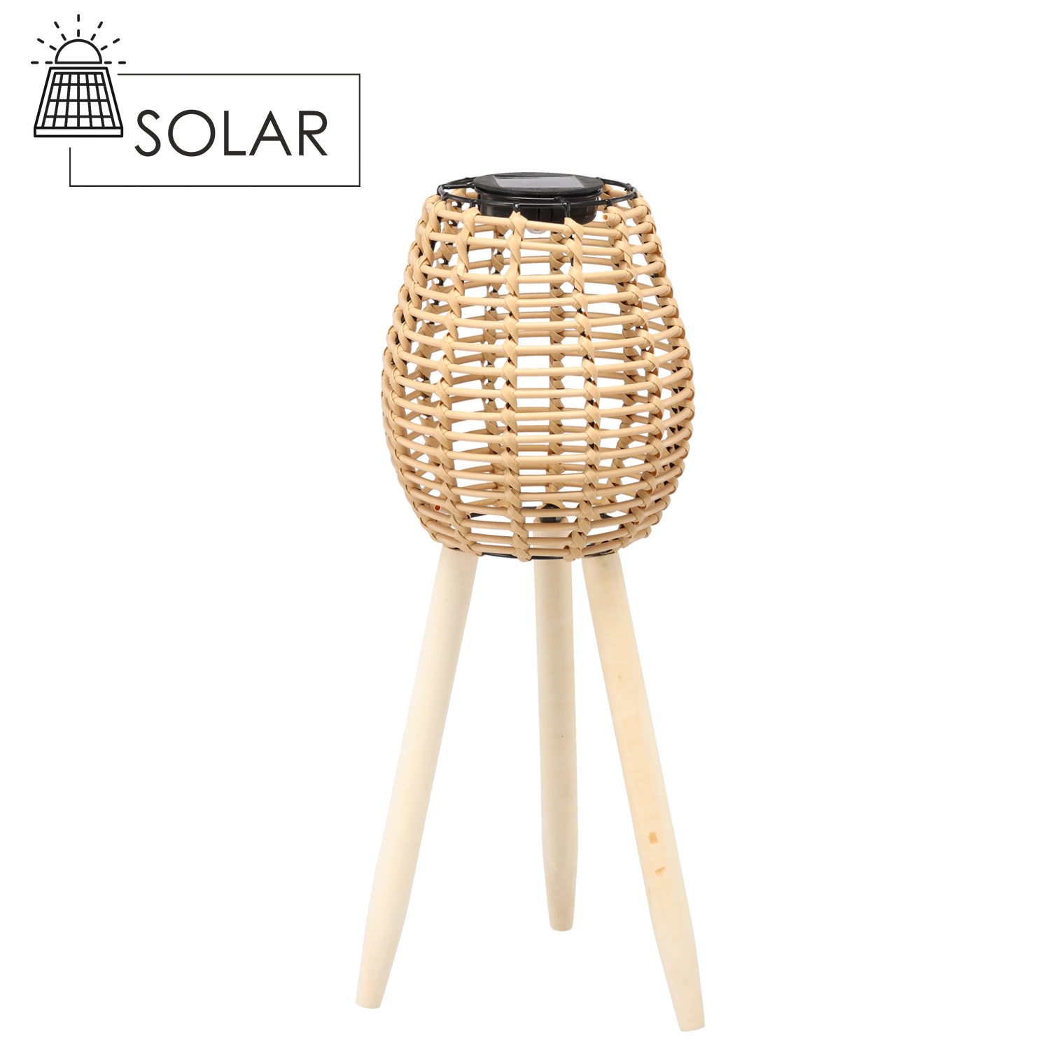 Grâce à son fonctionnement sans fil, vous l’installez facilement partout — sur une terrasse en bois, le long d’une allée de jardin ou sur un balcon. Le look rotin tressé apporte une touche bohème moderne et les pieds en bois assurent stabilité et élégance.