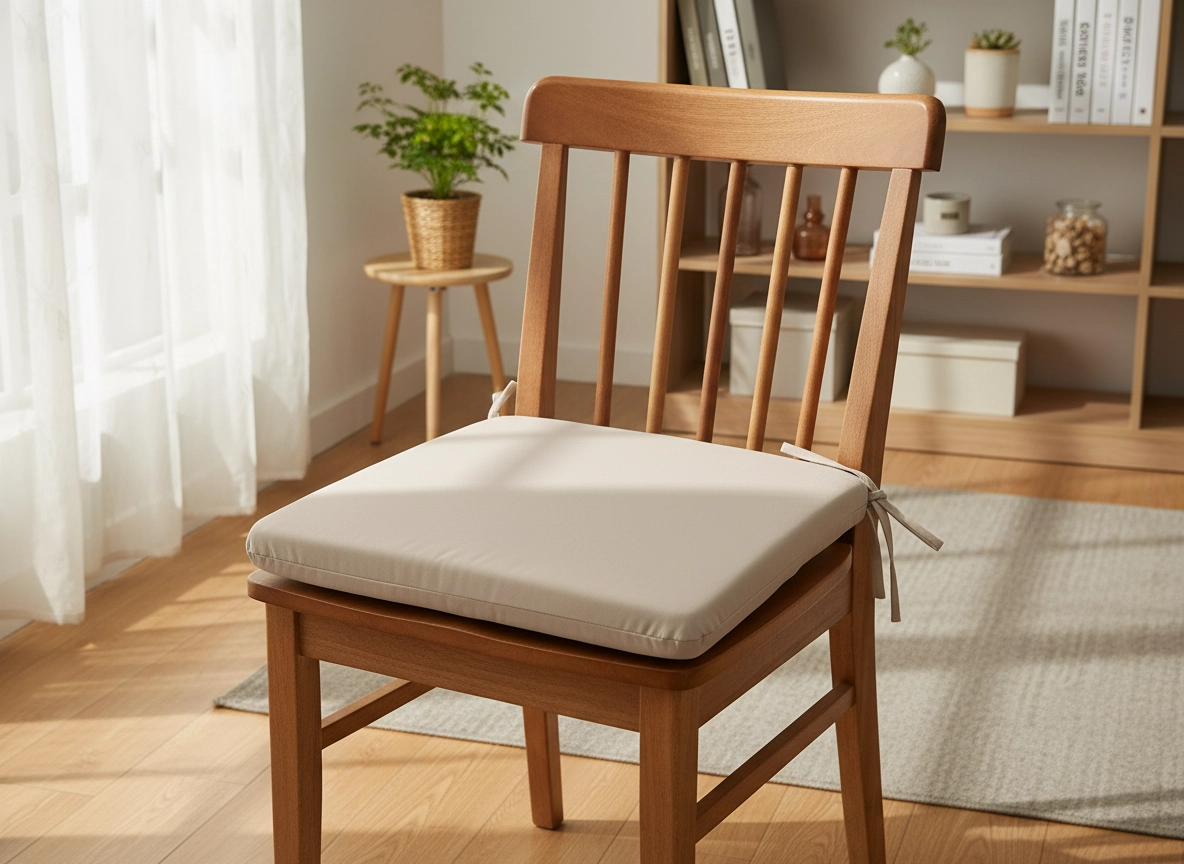 Deux liens d’attache maintiennent le coussin exactement en place — sans glisser ni se déplacer.
