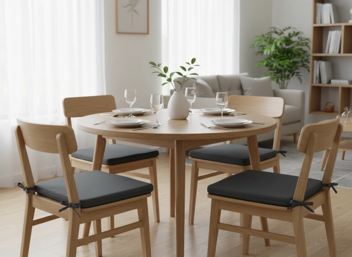 La housse amovible avec zip simplifie l’entretien – il suffit de la retirer et de la laver. Les liens d’angle maintiennent fermement le coussin en place, sans glisser. Le tissu de surface est résistant aux petites éclaboussures, idéal dans la cuisine comme au jardin.