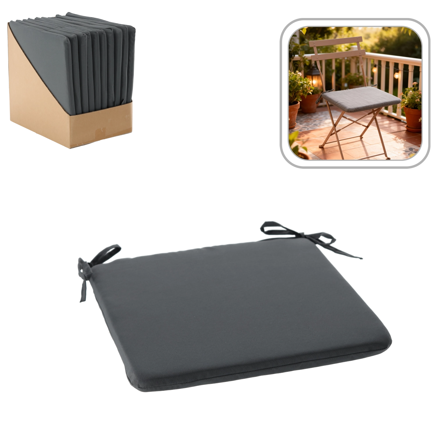 Ce coussin d’assise confortable de 40 × 40 × 3 cm adoucit l’assise tout en protégeant la chaise. Fin mais agréablement rembourré, il garantit le confort au quotidien, à l’intérieur comme à l’extérieur. Le gris foncé est intemporel, facile à assortir et apporte une touche élégante.