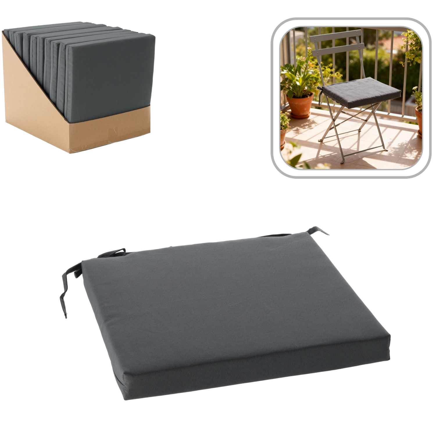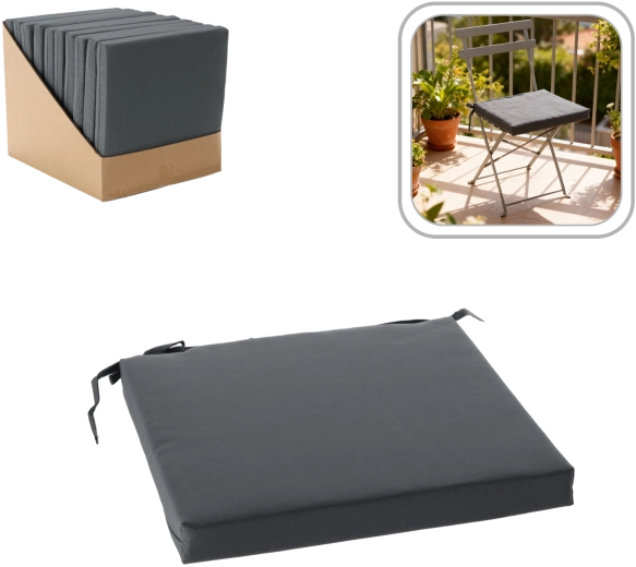 Optimisez votre coin détente avec ce coussin d’assise 40 × 40 × 5 cm au gris foncé élégant. Un textile résistant aux éclaboussures et un rembourrage agréablement moelleux assurent le confort au quotidien, à l’intérieur comme à l’extérieur. Des liens intégrés permettent une fixation rapide et sécurisée à la plupart des chaises.