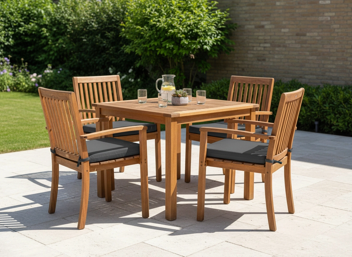 Deux liens latéraux maintiennent l’assise en place, que ce soit à la table à manger, sur le balcon ou au jardin.