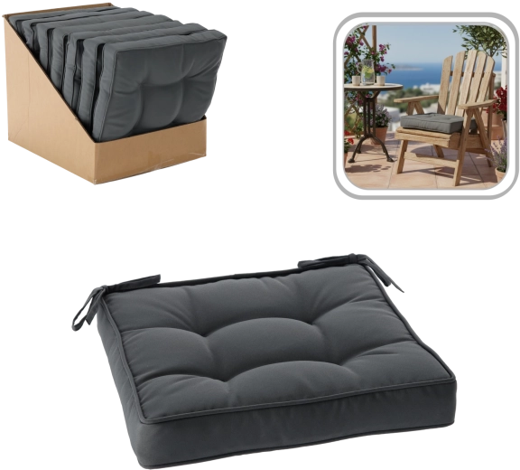 Rafraîchissez la salle à manger, la cuisine ou la terrasse avec un coussin d’assise qui allie style moderne et confort au quotidien. La teinte gris foncé s’harmonise aisément avec la plupart des styles et matériaux, du bois au métal, tout en étant très pratique à entretenir.