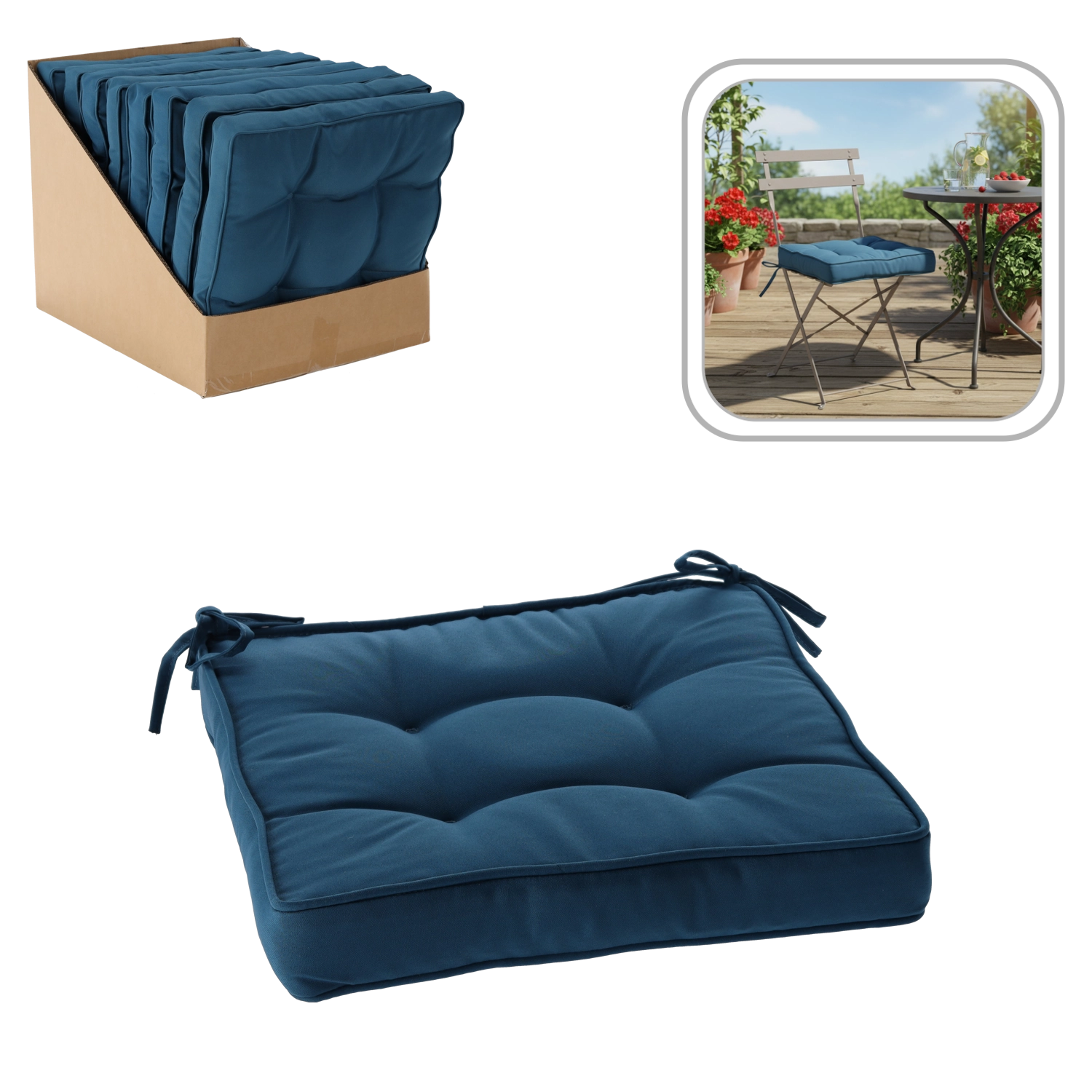 Ce coussin de qualité au format 40 × 40 × 6 cm est idéal pour une assise quotidienne. Son épais rembourrage en fibre de polyester apporte douceur et soutien, tandis que le piquage (tuftage) aide à conserver la forme et ajoute une touche élégante. La housse résistante 100 % polyester est facile d’entretien et adaptée à un usage courant à la maison comme en extérieur couvert.