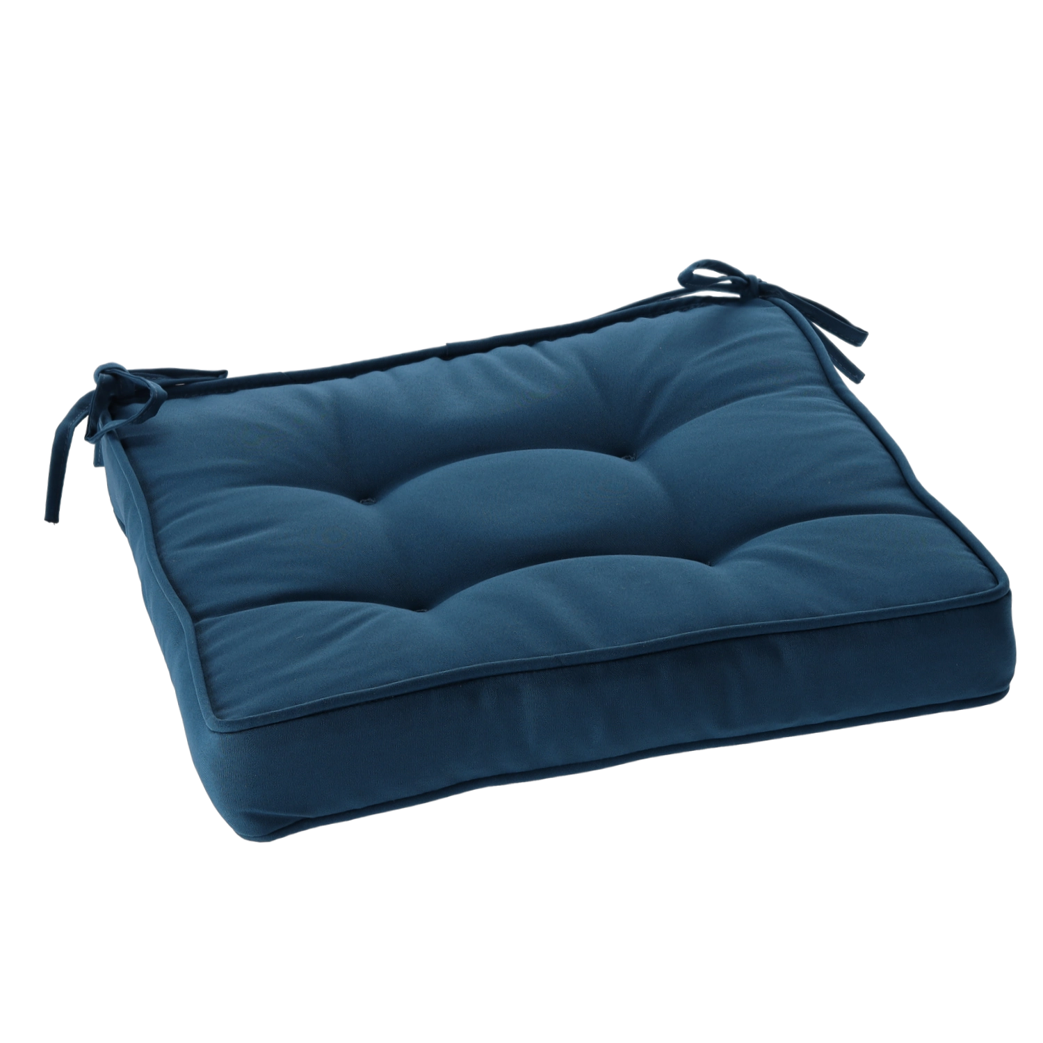 Les liens à nouer à la chaise empêchent le glissement, maintenant le coussin exactement là où vous en avez besoin. La teinte bleue s’harmonise aisément avec le mobilier en bois comme avec un intérieur moderne, et crée une atmosphère agréable et confortable sur votre espace extérieur.