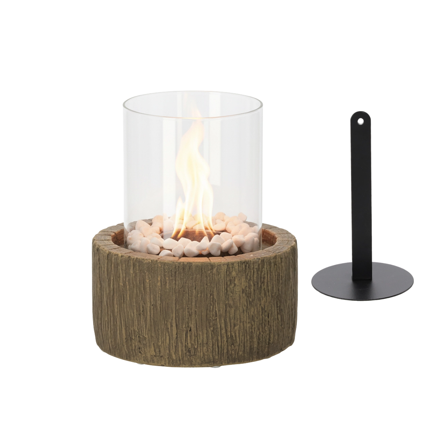 Le cylindre en verre pare-vent protège la flamme et améliore le confort d’utilisation en intérieur comme sur une terrasse couverte.