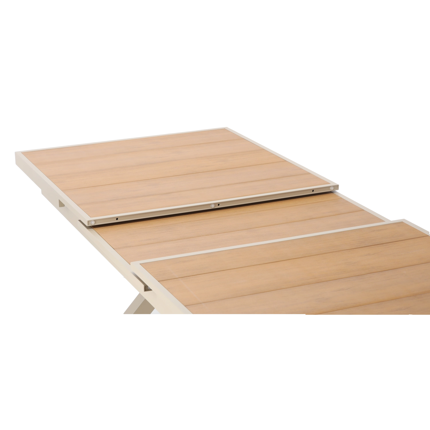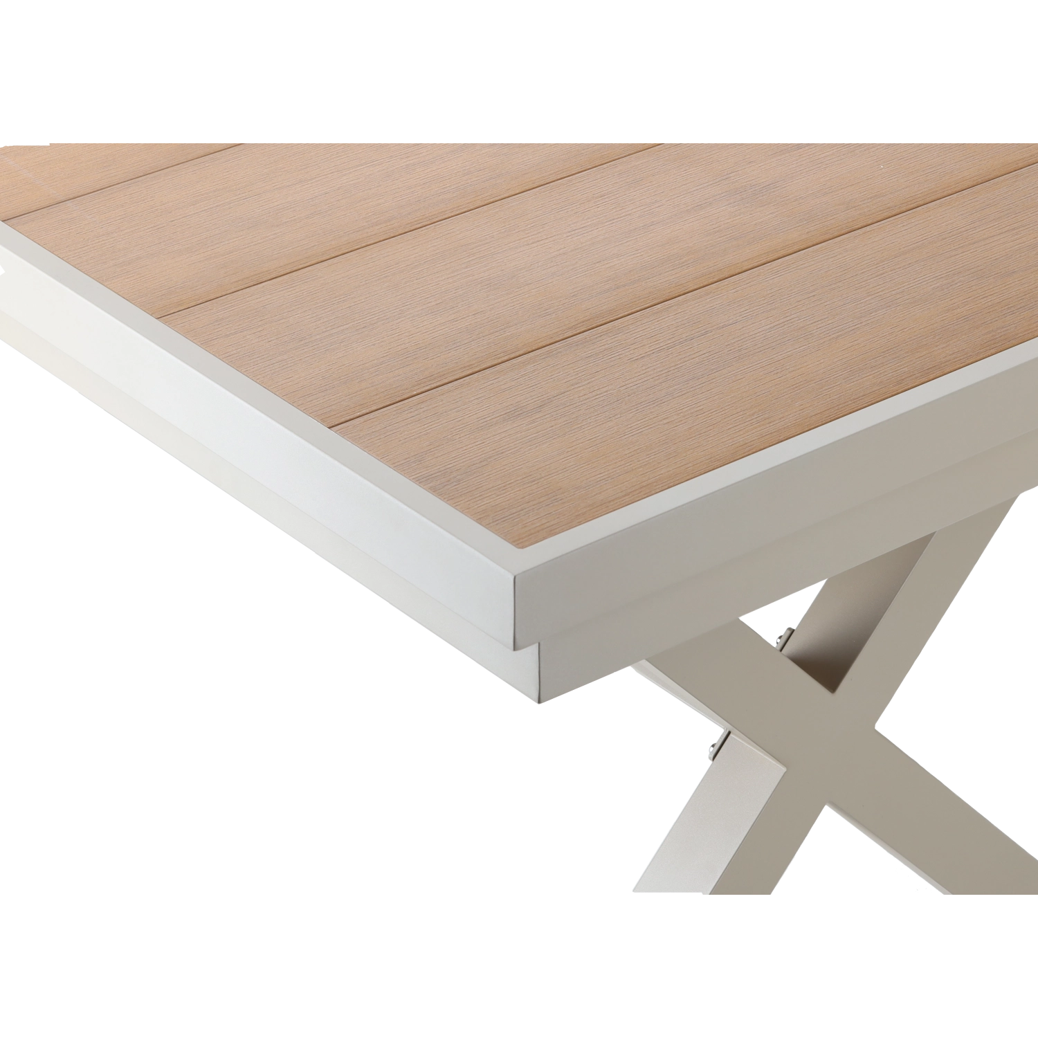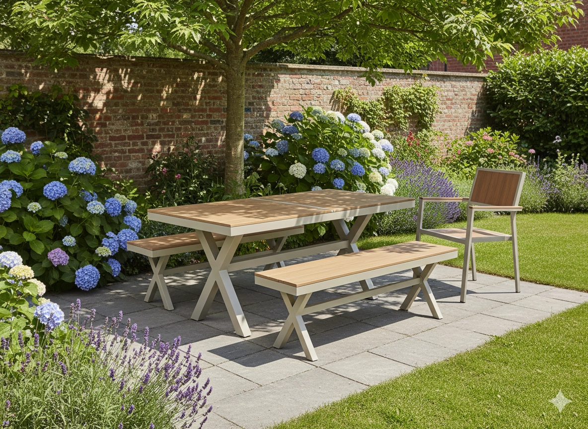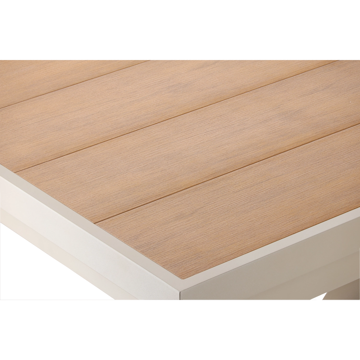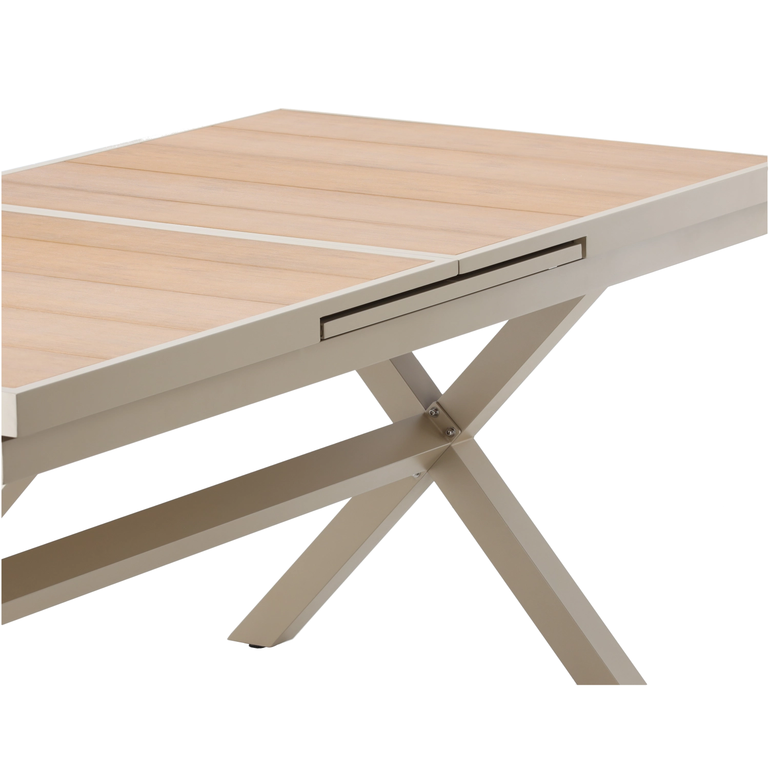 Élégante table de jardin extensible de couleur beige, alliant design moderne, structure en aluminium résistante et fonction pratique d’extension jusqu’à 240 cm. Le plateau à décor bois offre un aspect naturel et ne nécessite qu’un entretien minimal, idéal pour la terrasse, le jardin ou les espaces commerciaux.