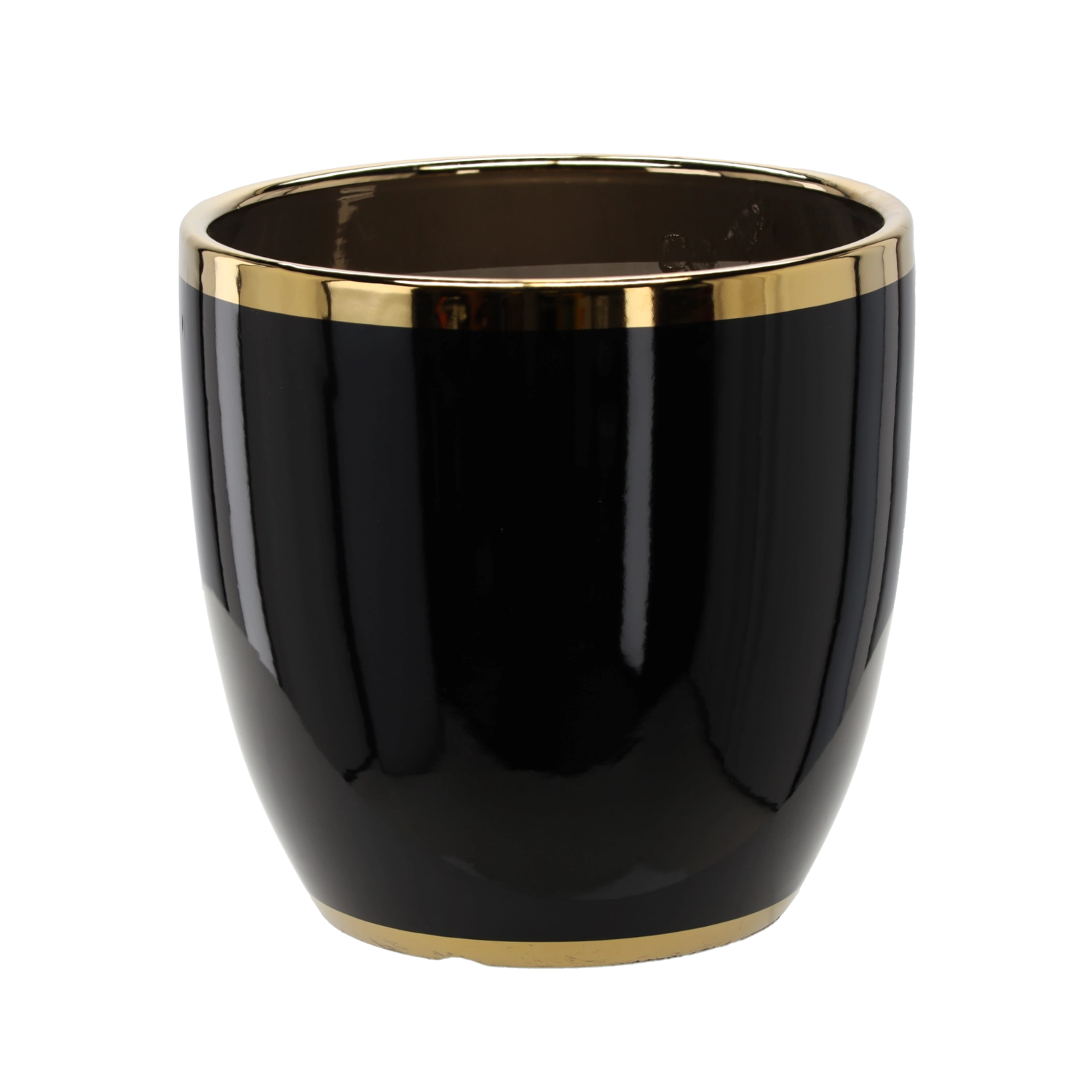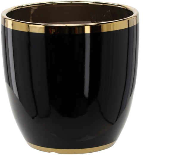 Offrez à vos plantes une allure représentative avec ce cache-pot en céramique qui séduit par le contraste entre le noir mat et le bord doré élégant. Grâce à sa fabrication robuste et à son entretien aisé, il est idéal pour le salon, le hall ou le bureau.