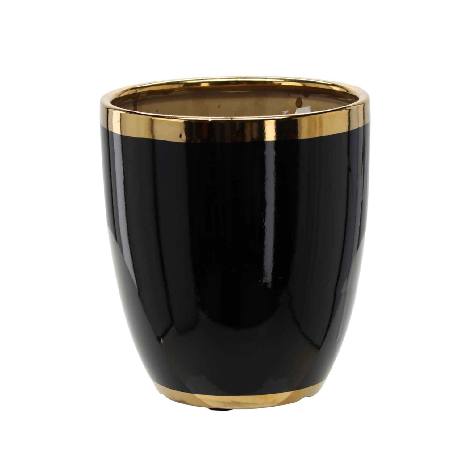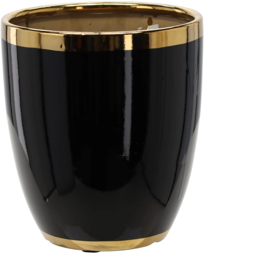 Cache-pot en céramique 26 × 26 × 27 cm noir avec liseré doré