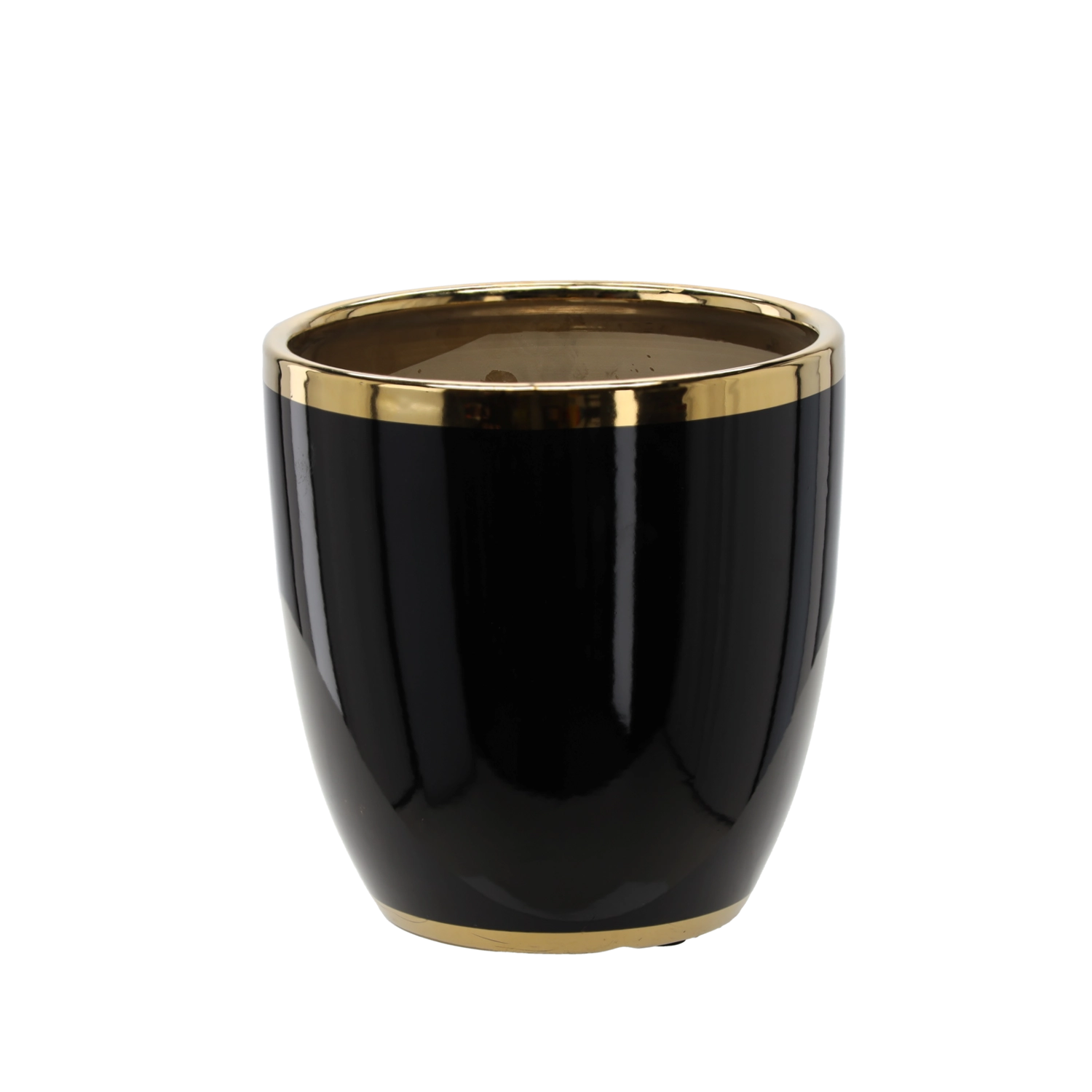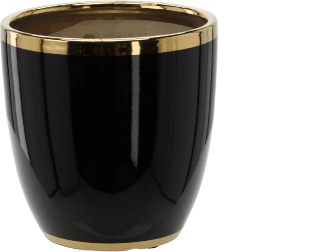 Sublimez votre intérieur avec un accessoire stylé. Ce cache-pot en céramique, dans un noir moderne avec une ligne dorée périphérique, s’intègre parfaitement aux intérieurs modernes, minimalistes ou glamour. Idéal pour les plantes d’intérieur et les décorations.