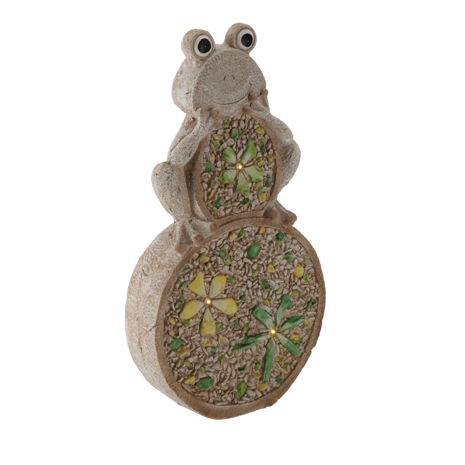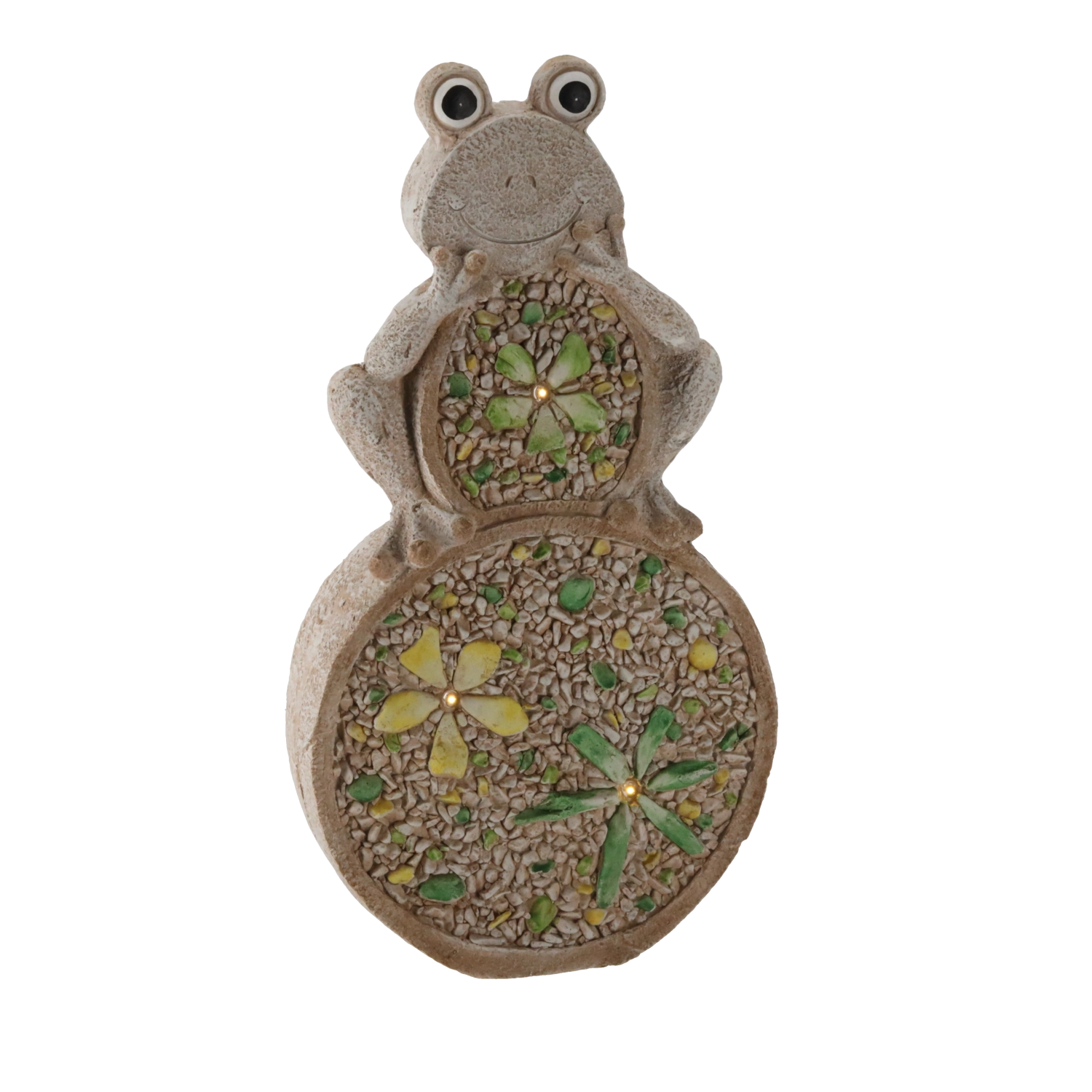 La surface à texture pierre et les incrustations de mosaïque colorées confèrent à la grenouille un aspect authentique qui attire le regard au premier coup d’œil.