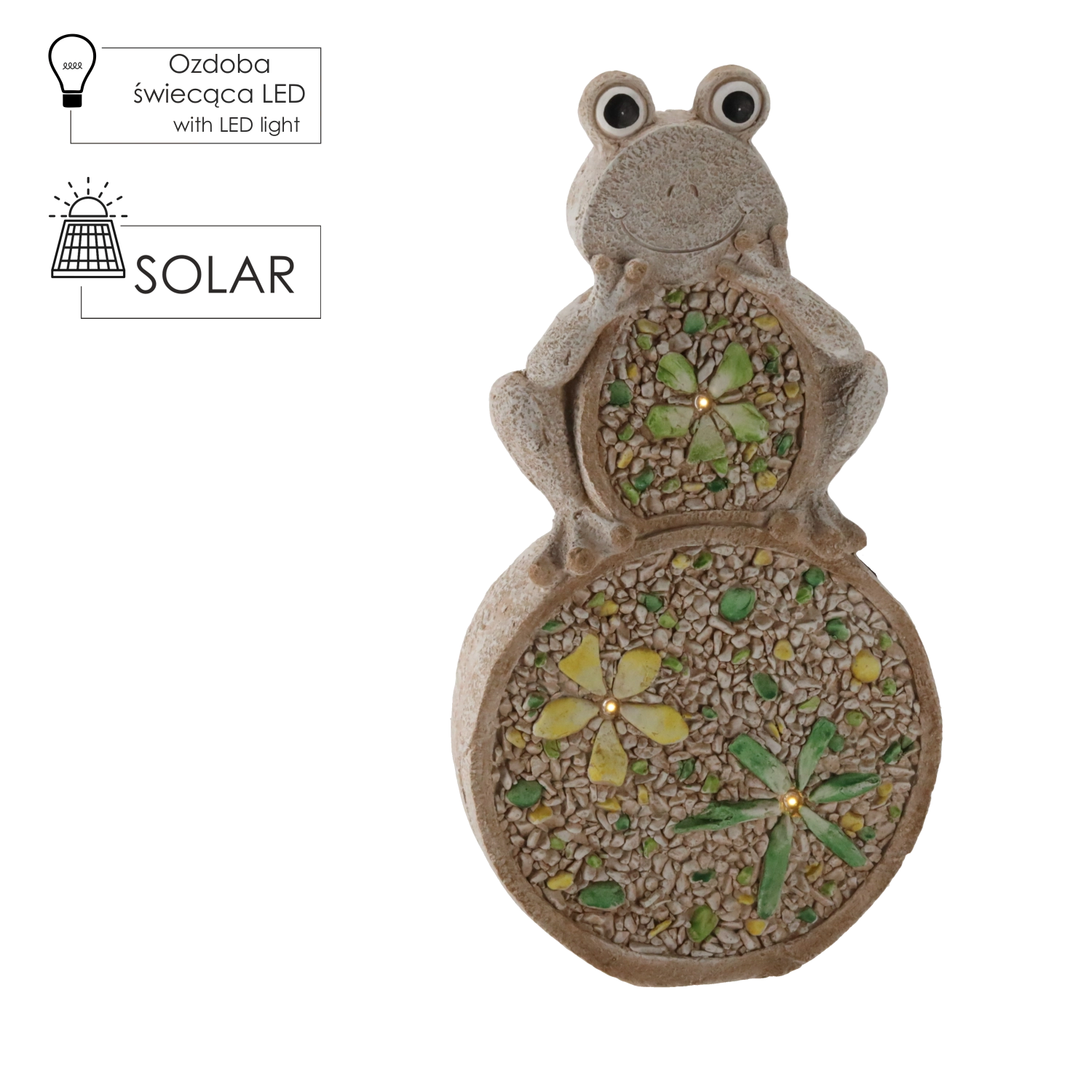 Apportez une touche de charme à votre espace extérieur avec cette élégante décoration – une grenouille sur pierre au relief délicatement texturé et à l’éclairage LED. La lueur du soir crée une ambiance agréable et met en valeur les détails mosaïqués, faisant de la figurine le centre d’attention naturel.