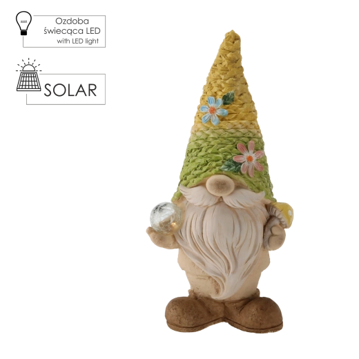 Ce charmant nain de jardin, avec son chapeau « tricoté » finement texturé, apportera une touche de caractère à vos espaces extérieurs. Grâce à ses LED intégrées, il crée une atmosphère agréable à la tombée de la nuit et devient un élément incontournable de votre jardin, terrasse ou balcon.