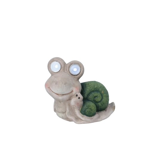 Cette figurine ludique d’escargot avec yeux LED intégrés apporte une atmosphère chaleureuse à votre jardin ou balcon et se transforme le soir en petite lumière décorative discrète. Les textures délicates de la coquille, l’expression souriante et le petit escargot sur le côté confèrent à la décoration un charme unique.