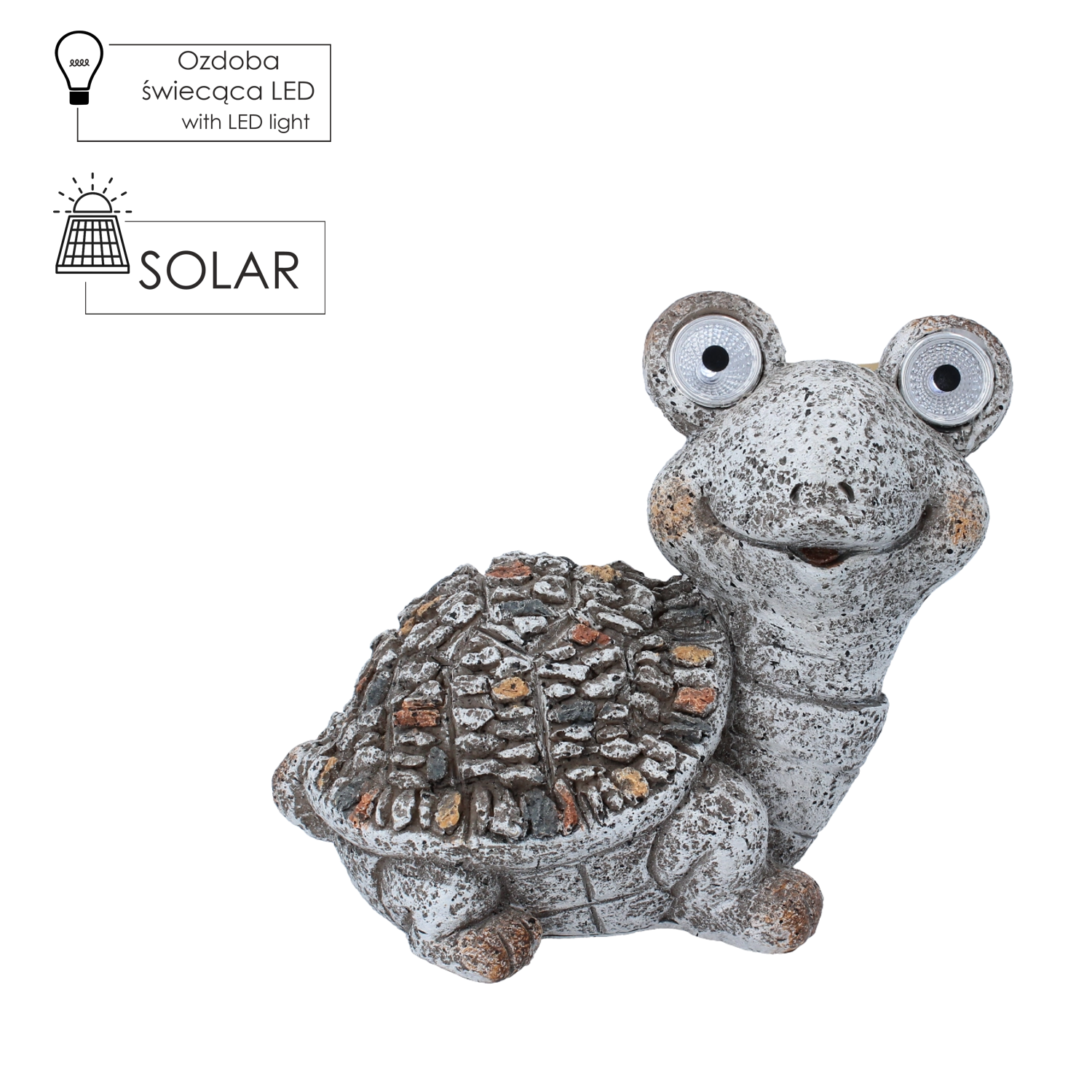 Cette figurine de tortue espiègle apporte instantanément une atmosphère accueillante à votre extérieur. Le panneau solaire intégré recharge la batterie durant la journée et les LED dans les yeux s’allument automatiquement à la tombée de la nuit, sans câbles ni prises. Grâce à ses dimensions compactes, elle se place facilement sur des marches, un rebord de fenêtre, une bordure, une jardinière ou un massif.