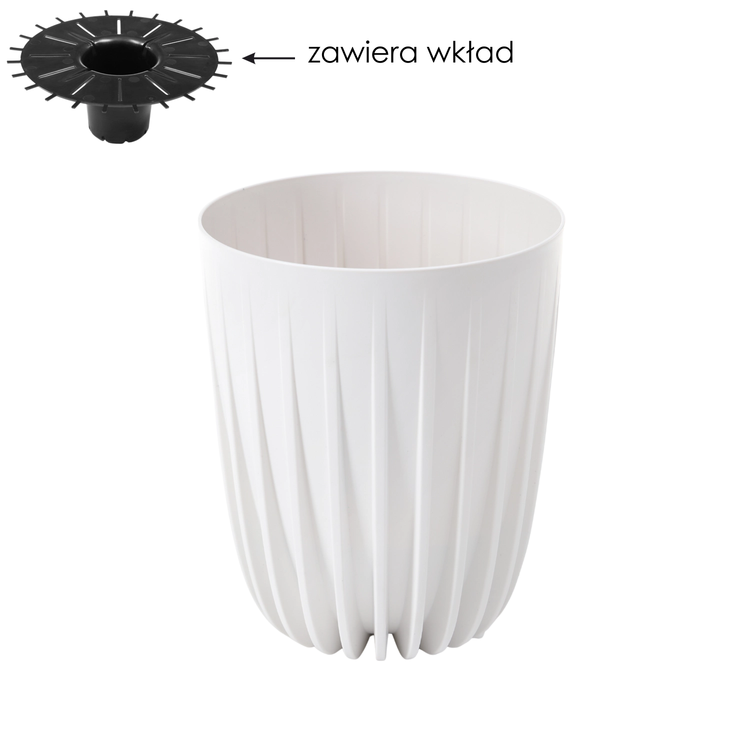 L’insert intégré assure l’évacuation correcte de l’excédent d’eau, réduit la consommation de substrat et simplifie l’entretien des plantes – sans besoin de billes d’argile.