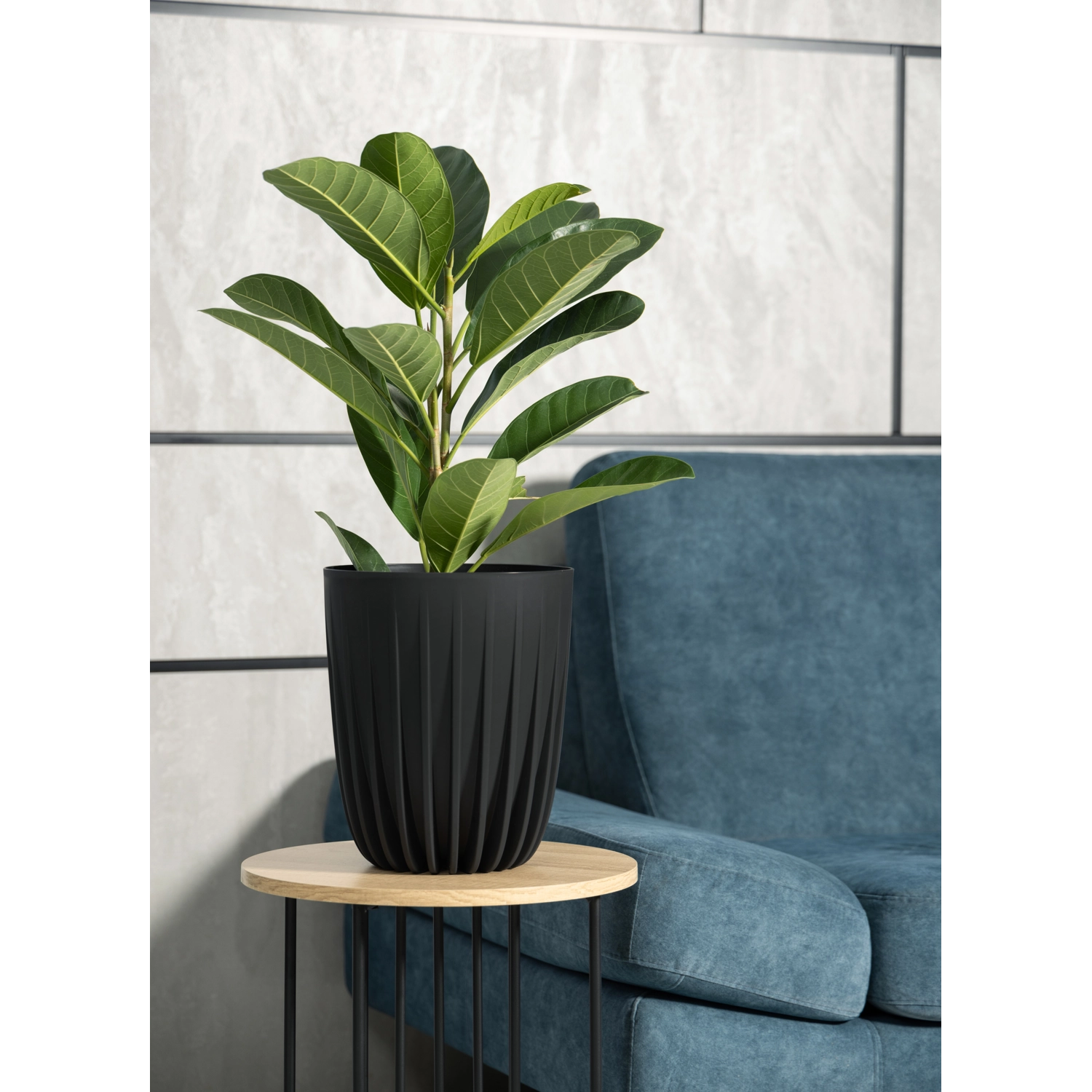 Le pot Mira en noir allie un style intemporel à des fonctions pratiques. Fabriqué en plastique 100 % recyclé, il est respectueux de l’environnement tout en étant résistant aux dommages mécaniques, à l’humidité et au gel. Les rainures verticales et la forme effilée s’intègrent parfaitement aux intérieurs modernes et scandinaves, ainsi qu’aux balcons et terrasses.
