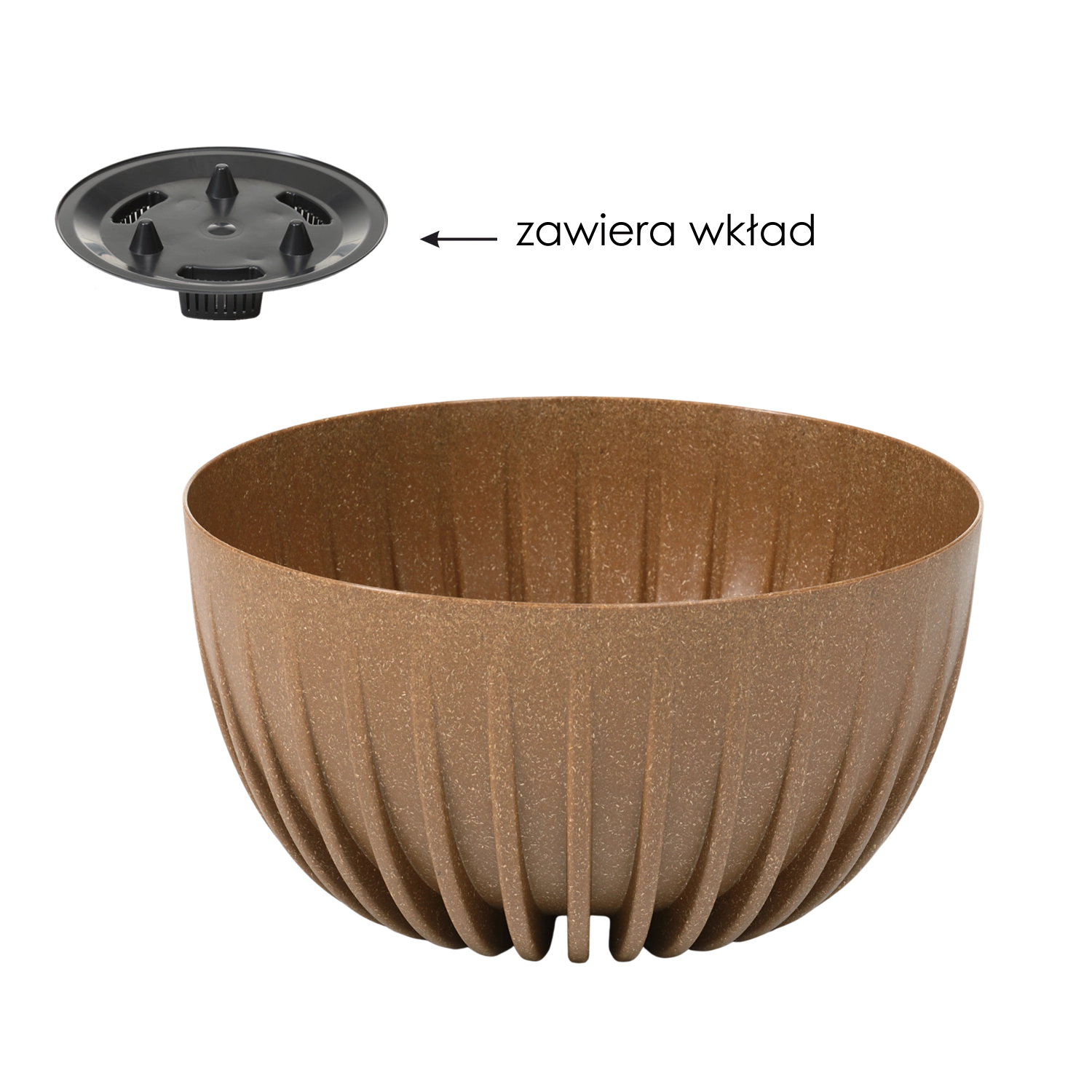 Cette coupe à fleurs de couleur naturelle associe une composition écologique avec jusqu’à 40 % de sciure de bois, une faible légèreté, une résistance aux intempéries et un design moderne. Elle comprend un insert pour une utilisation efficace du terreau et de l’arrosage ainsi qu’un bouchon amovible pour évacuer l’excès d’eau lors d’une utilisation en extérieur.