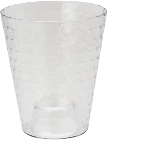 Le cache-pot pour orchidées Diament Petit en plastique transparent de qualité, orné d'un fin motif 3D de petits triangles, apporte à votre intérieur style et éclat unique. Grâce à sa transparence, il laisse passer la lumière jusqu'aux racines, crée de reflets saisissants au soleil et reste résistant aux fissures et aux enfoncements. La forme intérieure protège les racines contre la stagnation de l'eau et un positionnement trop profond du pot.